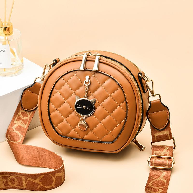 Новый стиль маленькая сумка женская в иностранном стиле сумка через плечо модный широкий плечевой ремень ромбовидная клетка кроссбоди маленькая круглая сумка CLE