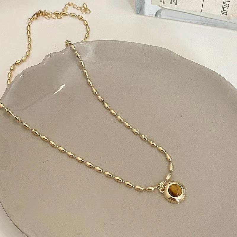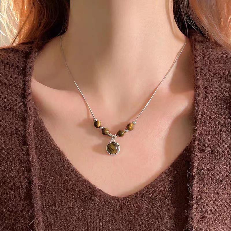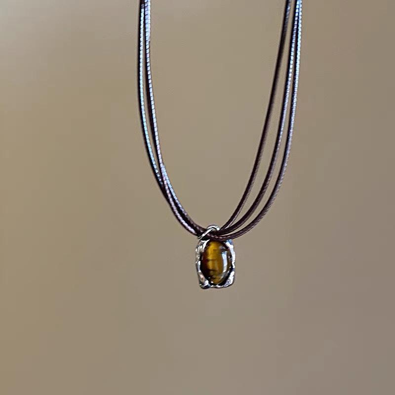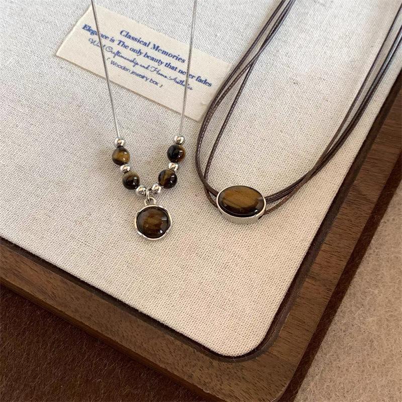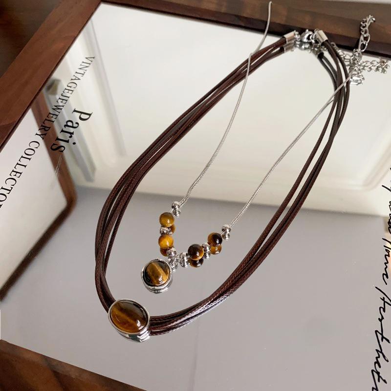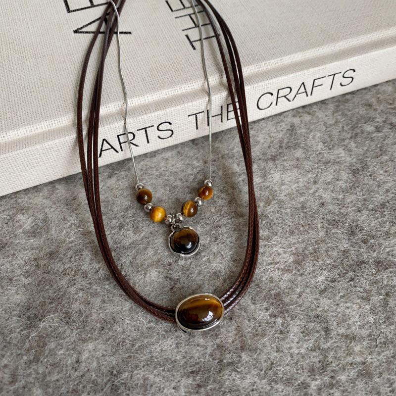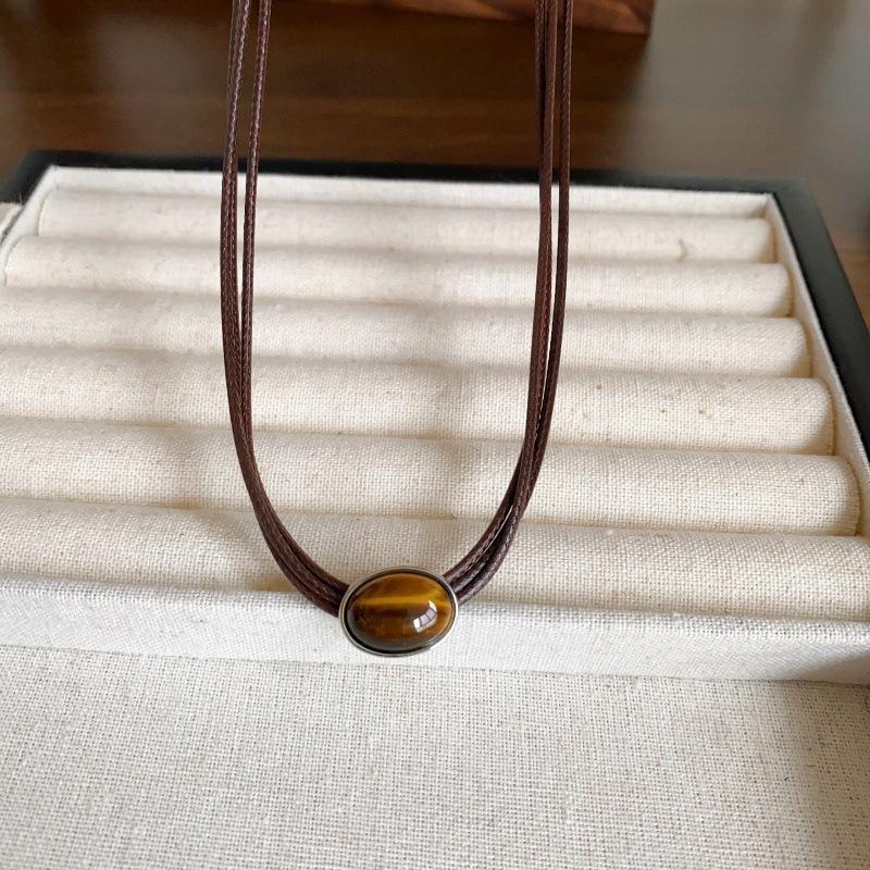 Винтажное кожаное коричневое каменное ожерелье с подвеской, чокер, темпераментная ключичная цепочка для женщин и девушек, ожерелье на осень-зиму