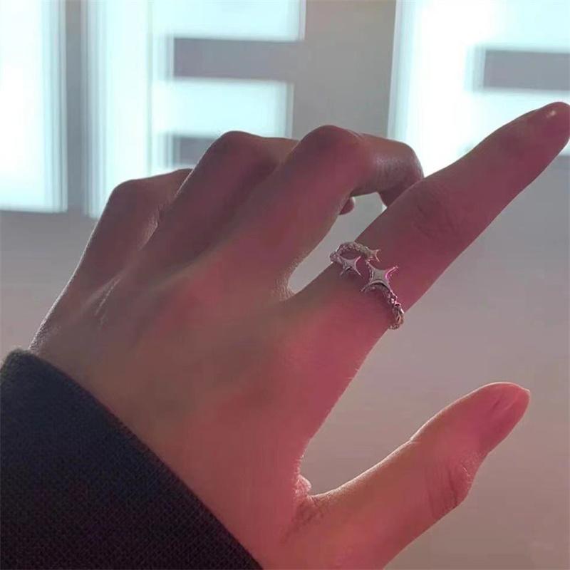 Кольцо в форме звезды серебряного цвета в стиле панк с четырехконечной звездой, регулируемое кольцо для женщин и мужчин, ювелирные изделия на палец, аксессуары