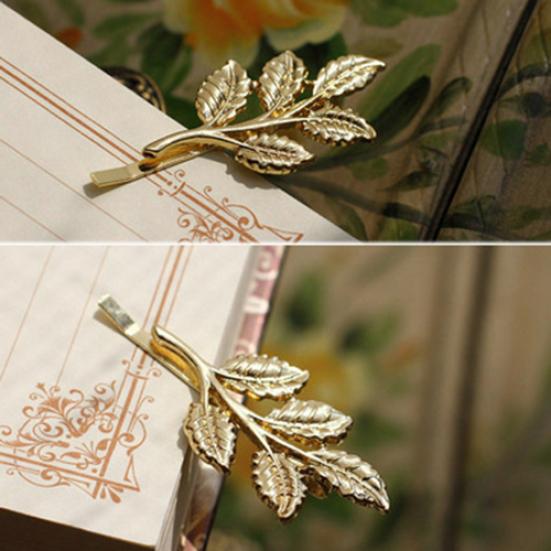Модные милые женщины и девушки, сплав, золотой лист, заколка для волос, аксессуар, Рождественский подарок