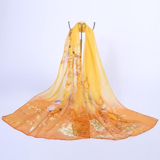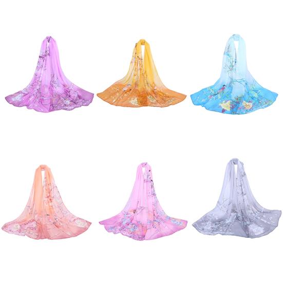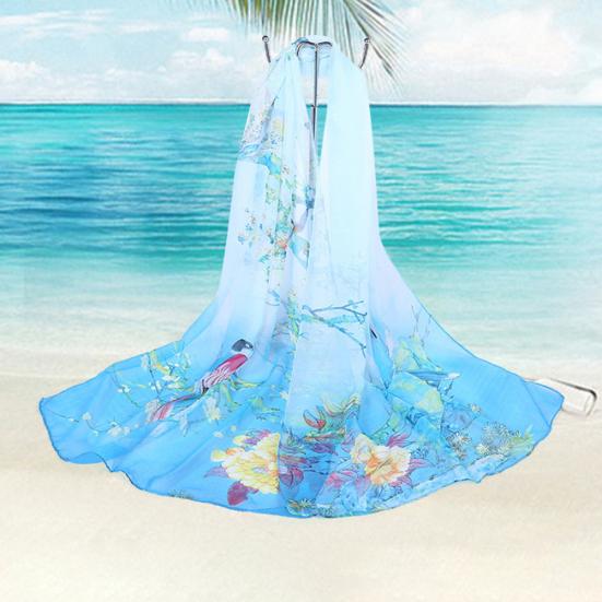 Модный женский шейный платок из мягкого тонкого шифона с цветочным принтом, дорожная пляжная шаль