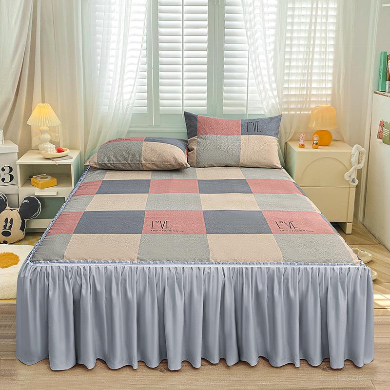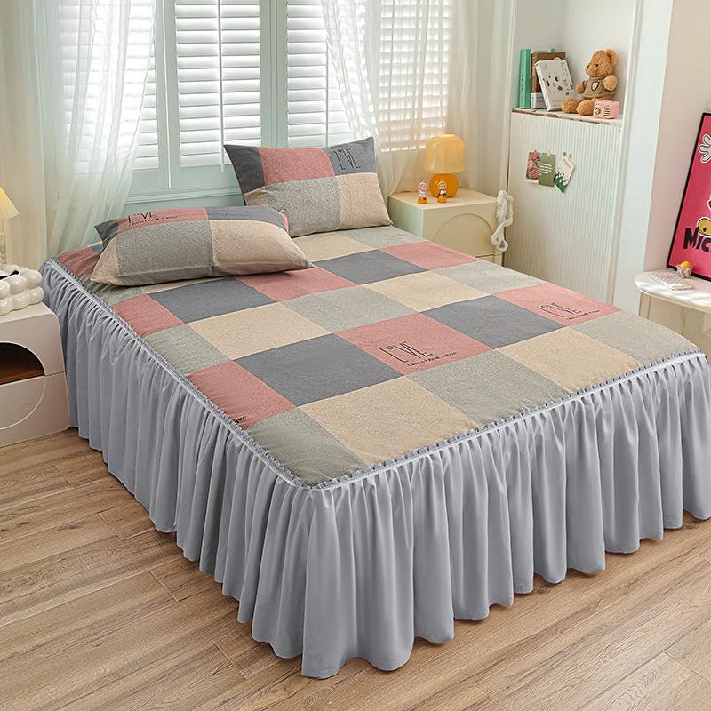 Спальня Бытовая цельная шлифовальная юбка-кровать Однотонное приятное для кожи покрывало Покрывало для спальни Простыни для студенческого общежития