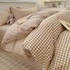 Комплект постельного белья из чистого хлопка, четырехпредметный, простой клетчатый, хлопковые простыни, пододеяльник, полосатое постельное белье