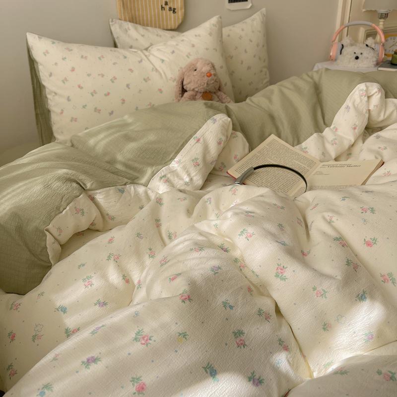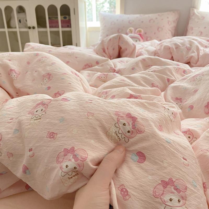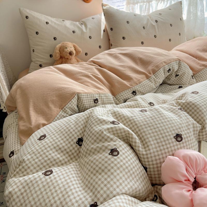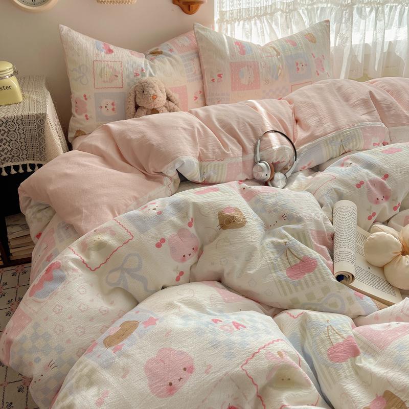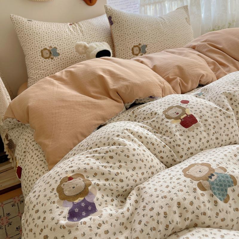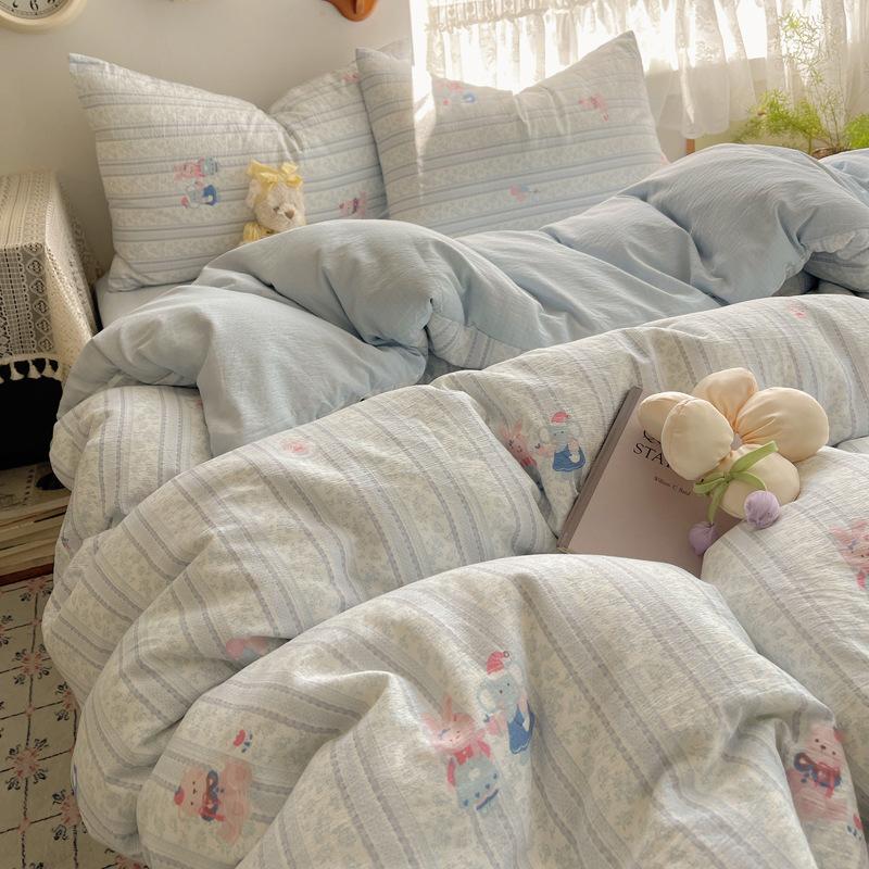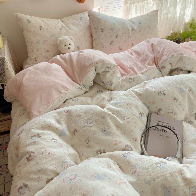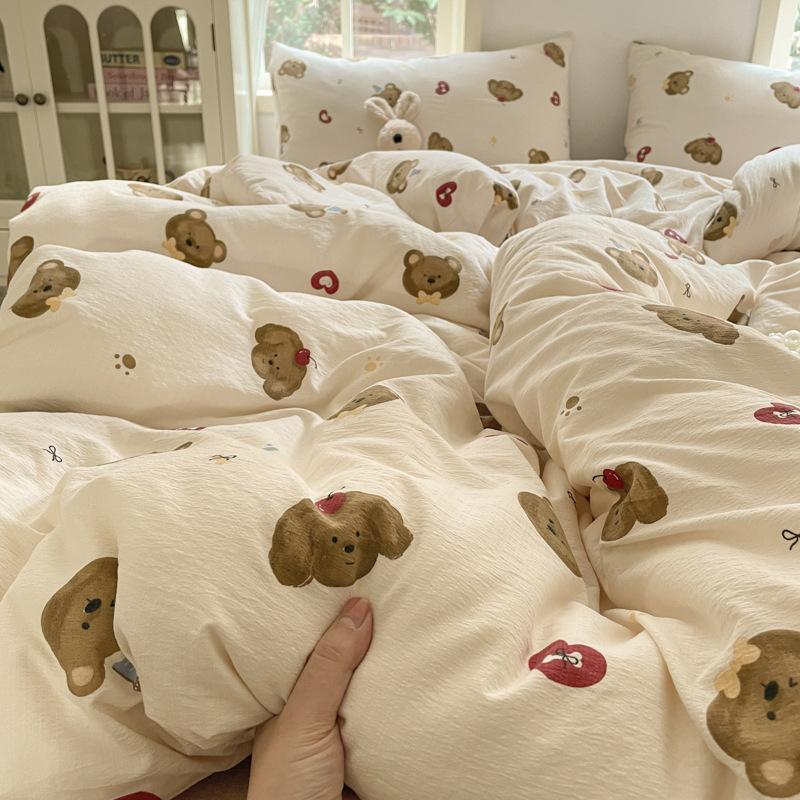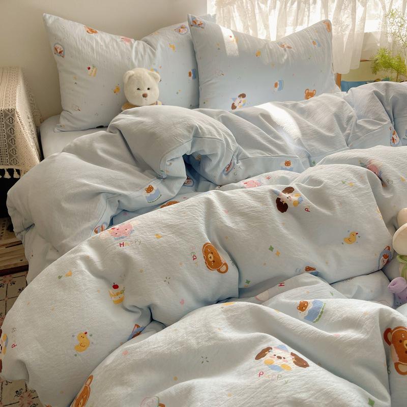 Комплект постельного белья из четырех предметов типа А из двойной пряжи, мультяшная простыня, пододеяльник, общежитие, комплект постельного белья из трех предметов
