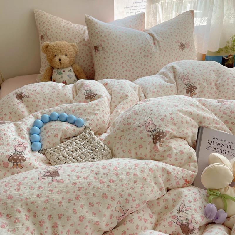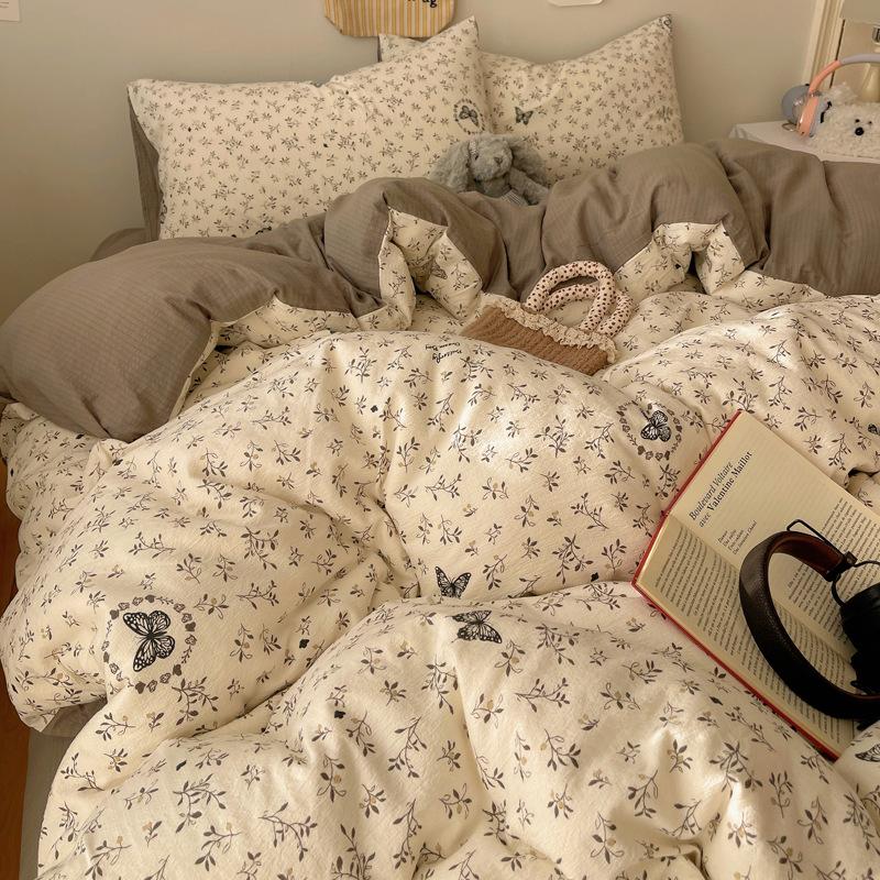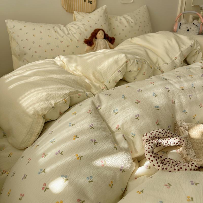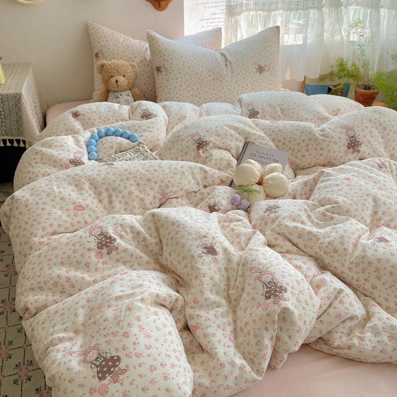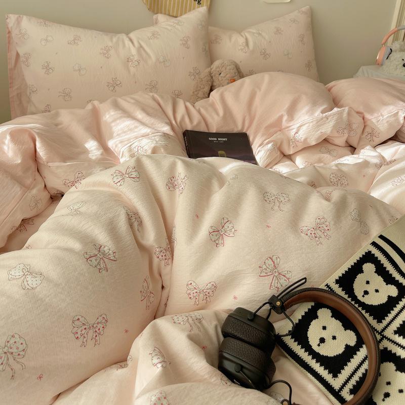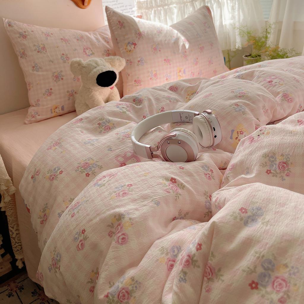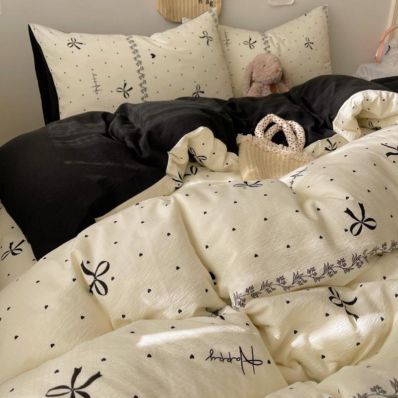 Комплект постельного белья из четырех предметов типа А из двойной пряжи, мультяшная простыня, пододеяльник, общежитие, комплект постельного белья из трех предметов