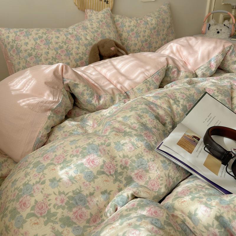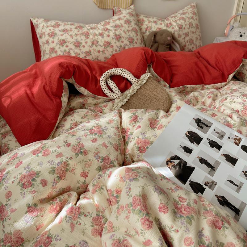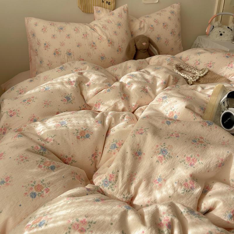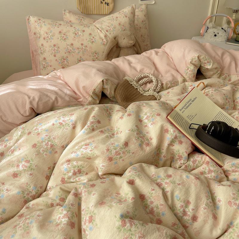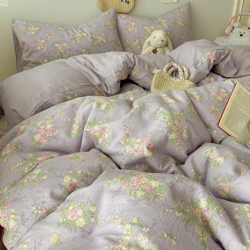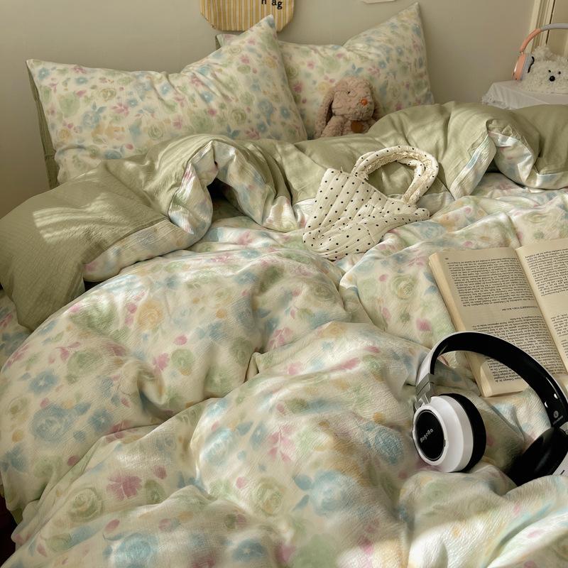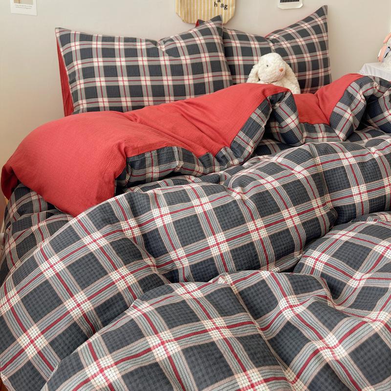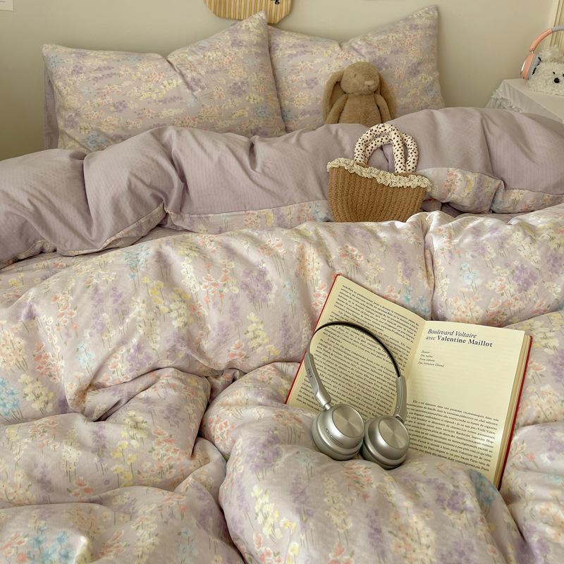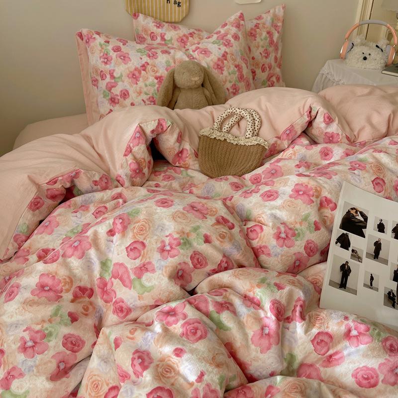 Комплект постельного белья из четырех предметов типа А из двойной пряжи, мультяшная простыня, пододеяльник, общежитие, комплект постельного белья из трех предметов