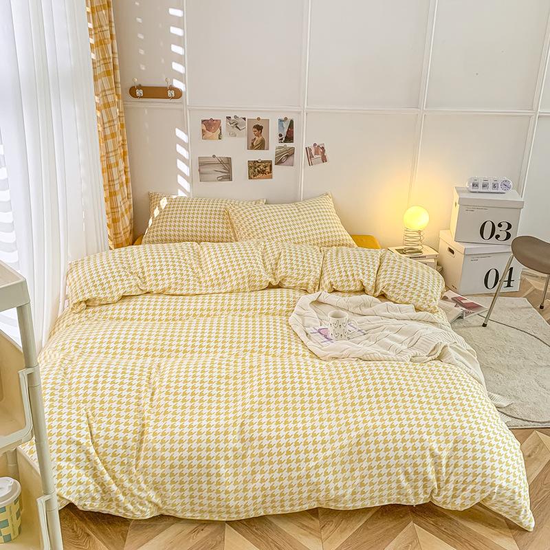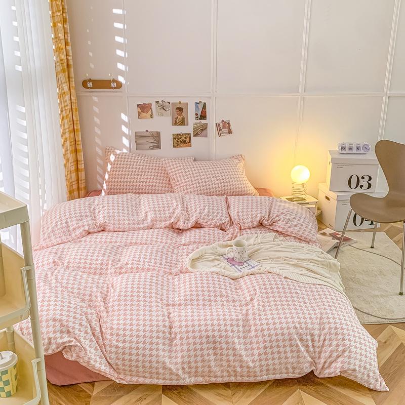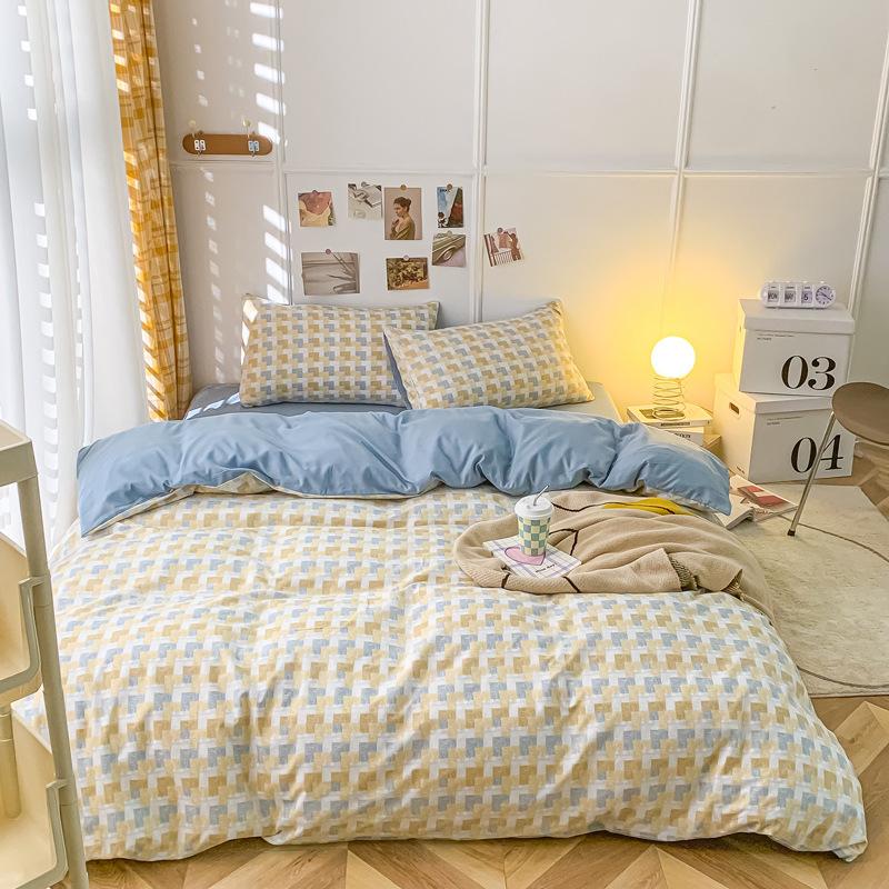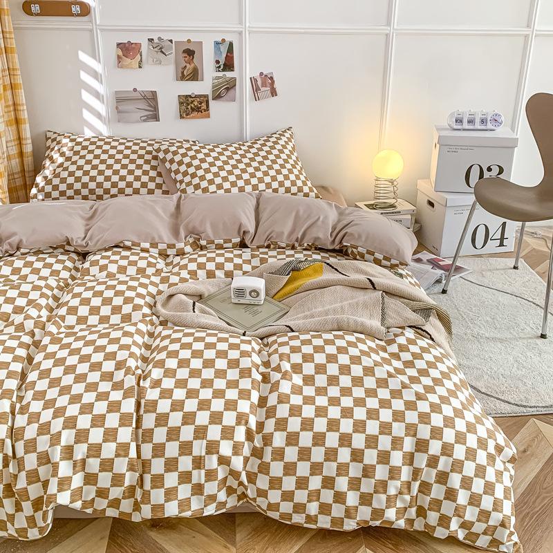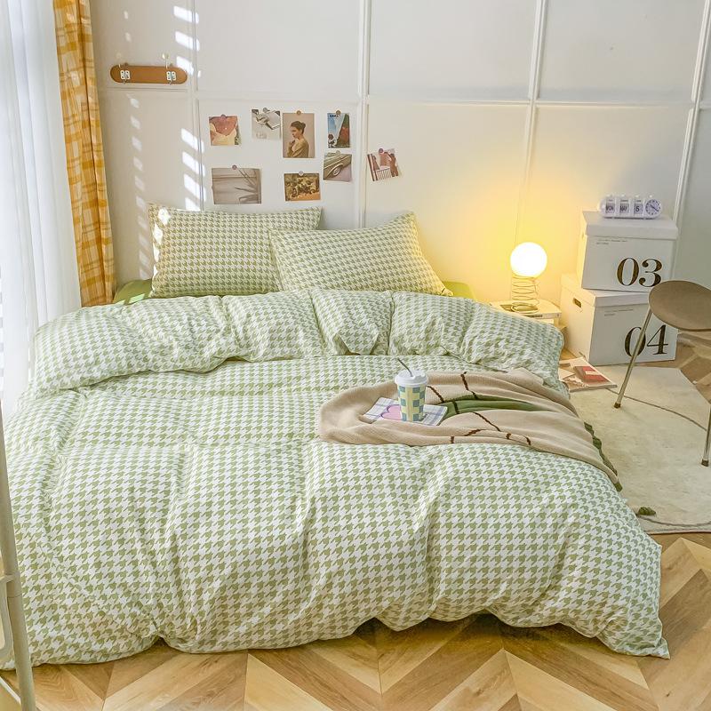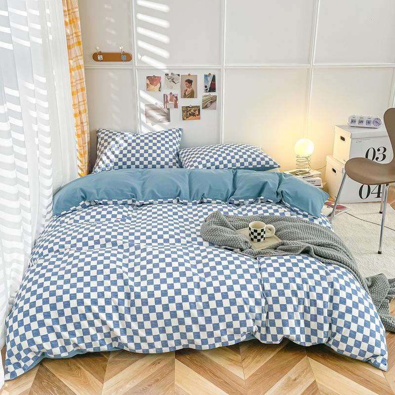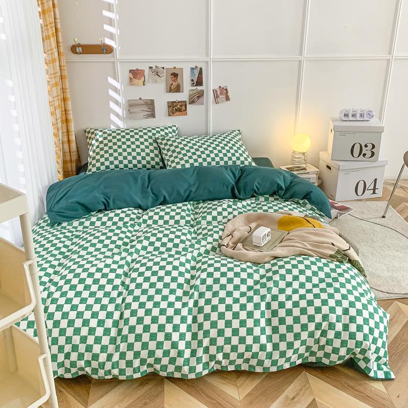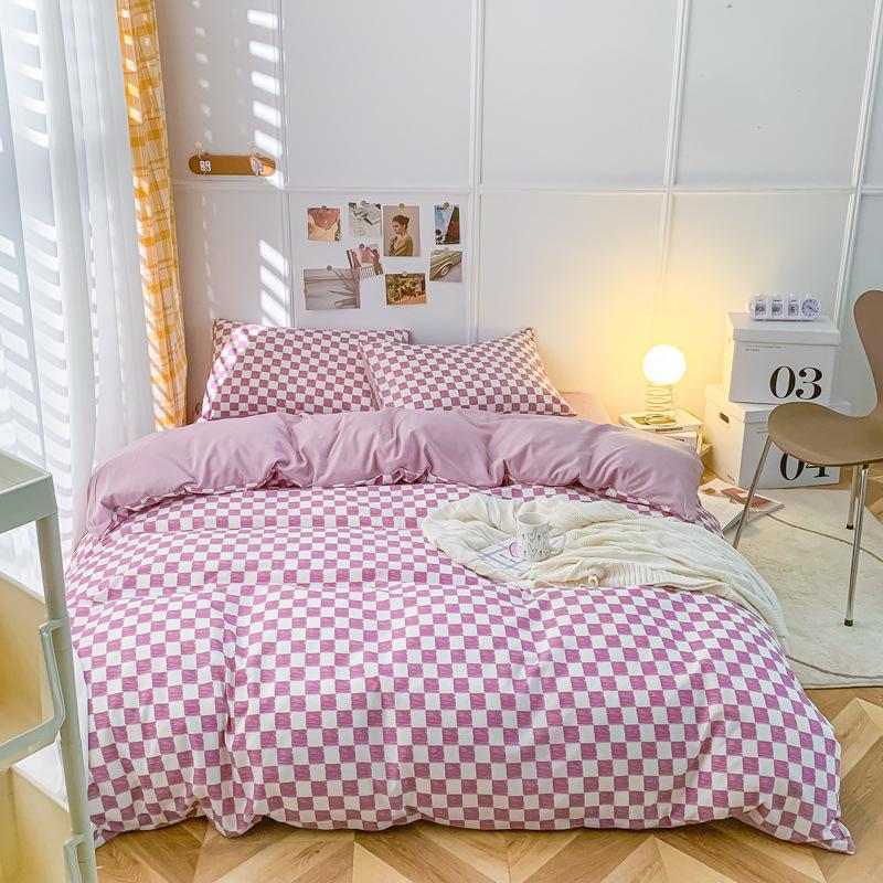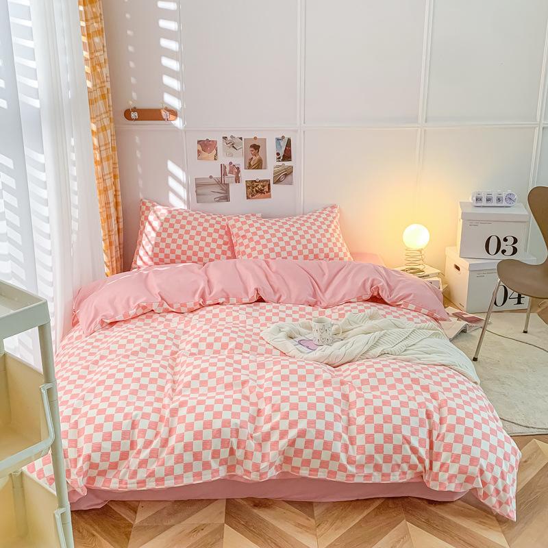 Удобная простыня цвета макарон, комплект из четырех предметов, комплект из трех предметов, постельное белье, одеяло для спальни, покрывало из хлопка в клетку