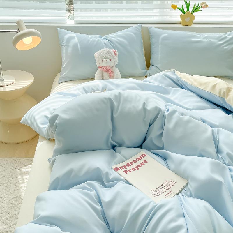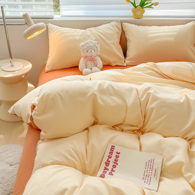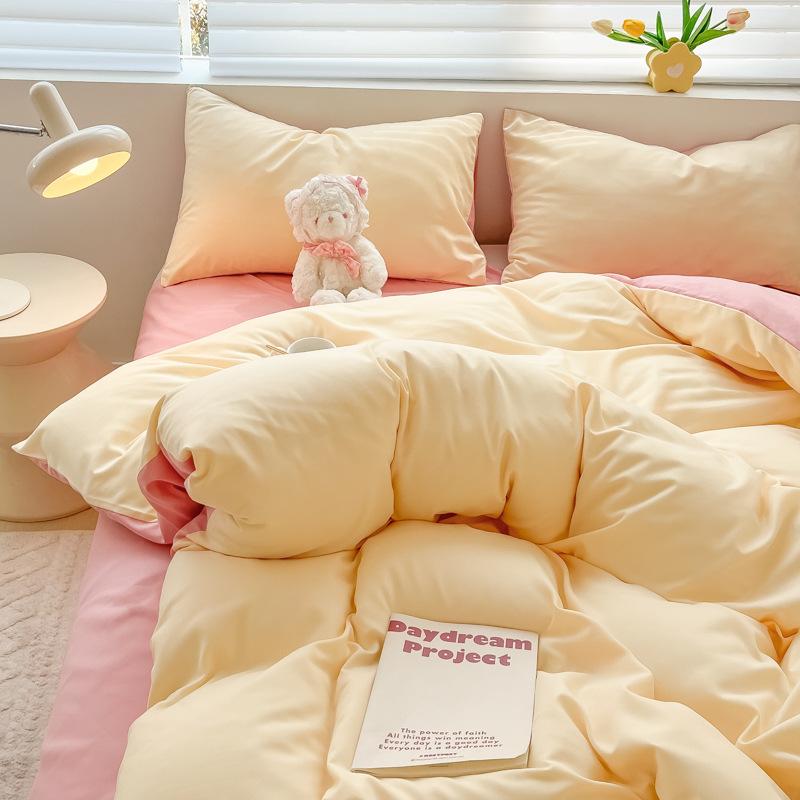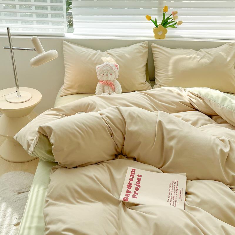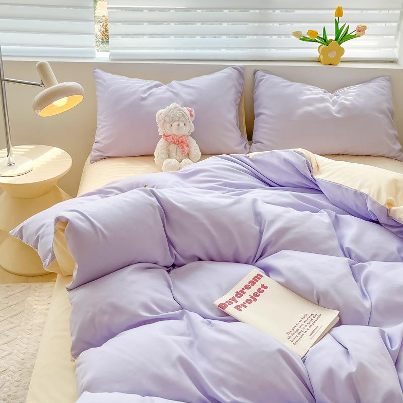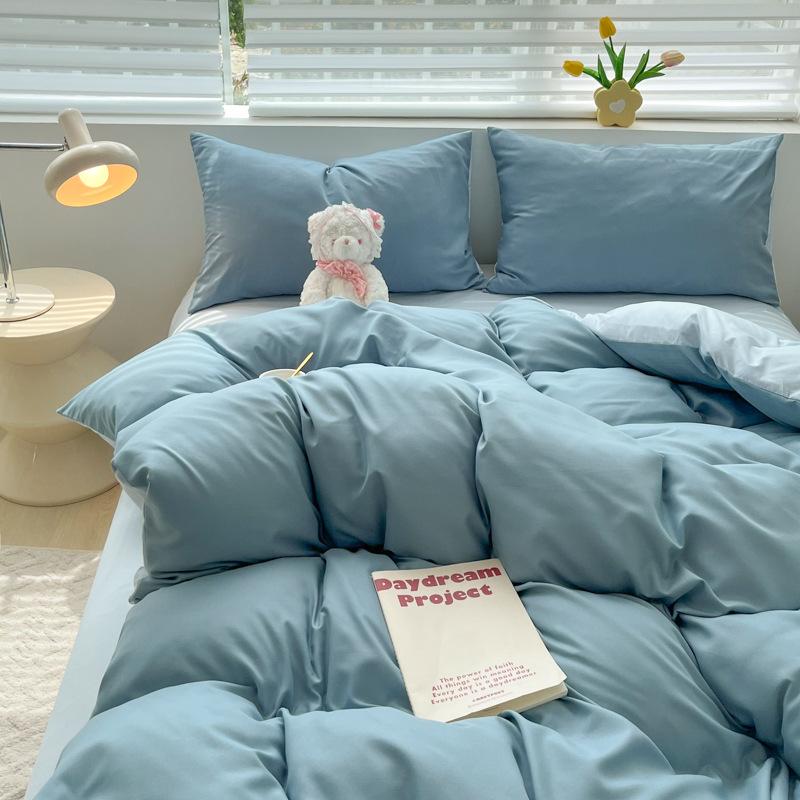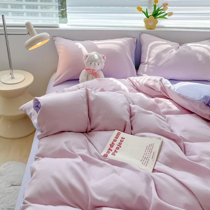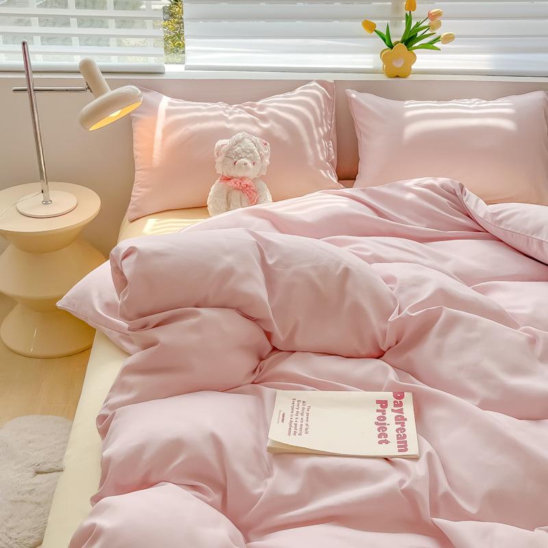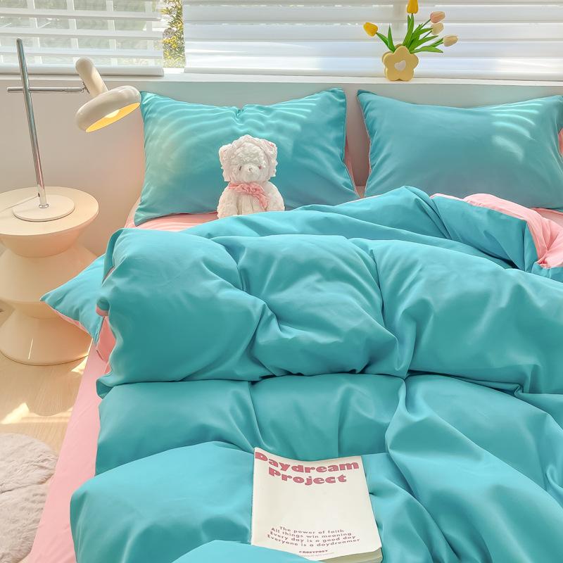 Удобная простыня цвета макарон, комплект из четырех предметов, комплект из трех предметов, постельное белье, одеяло для спальни, покрывало из хлопка в клетку