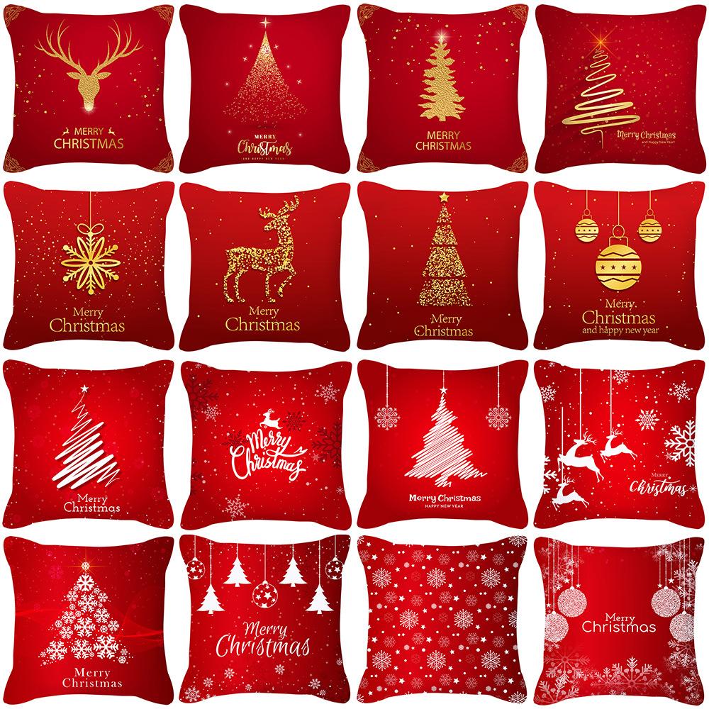 Красная Рождественская Наволочка Новая Праздничная Праздничная Персиковая Кожа Наволочка Домашняя Наволочка для Подушки на Диван