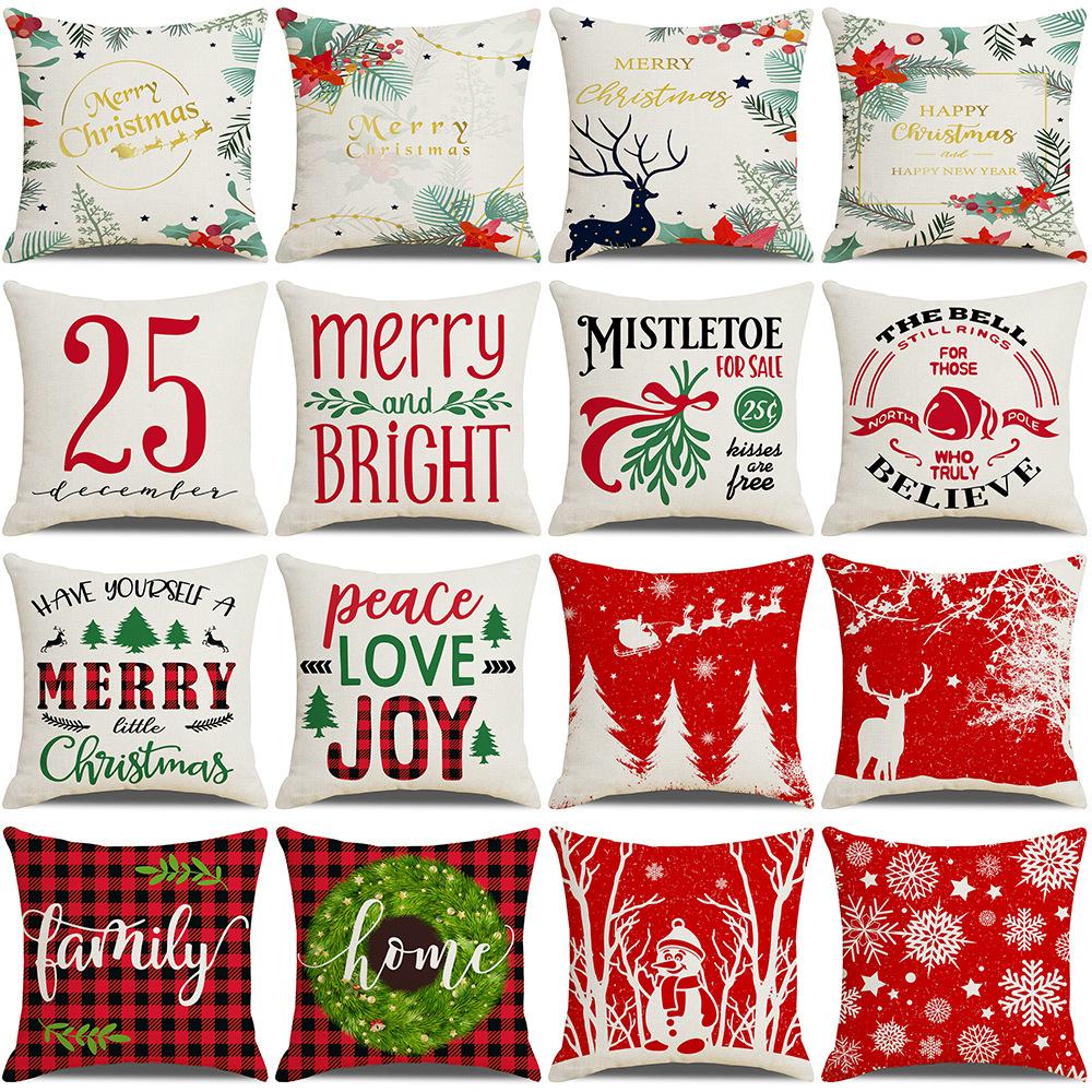 Рождественская серия простых принтов Льняные подушки Домашние диванные подушки Офисные наволочки