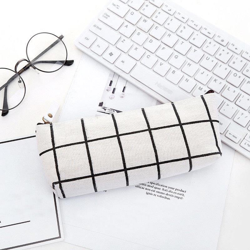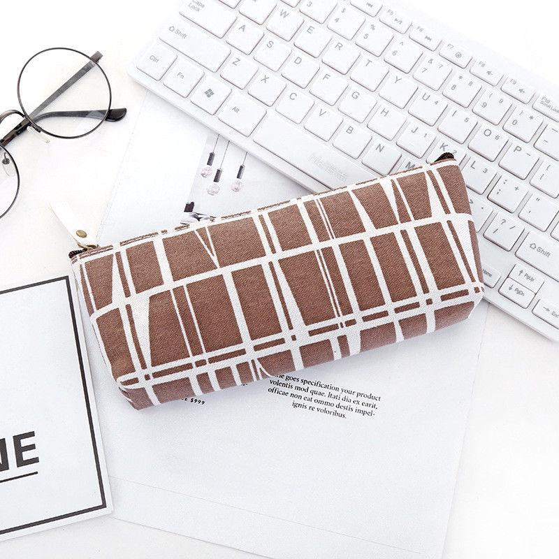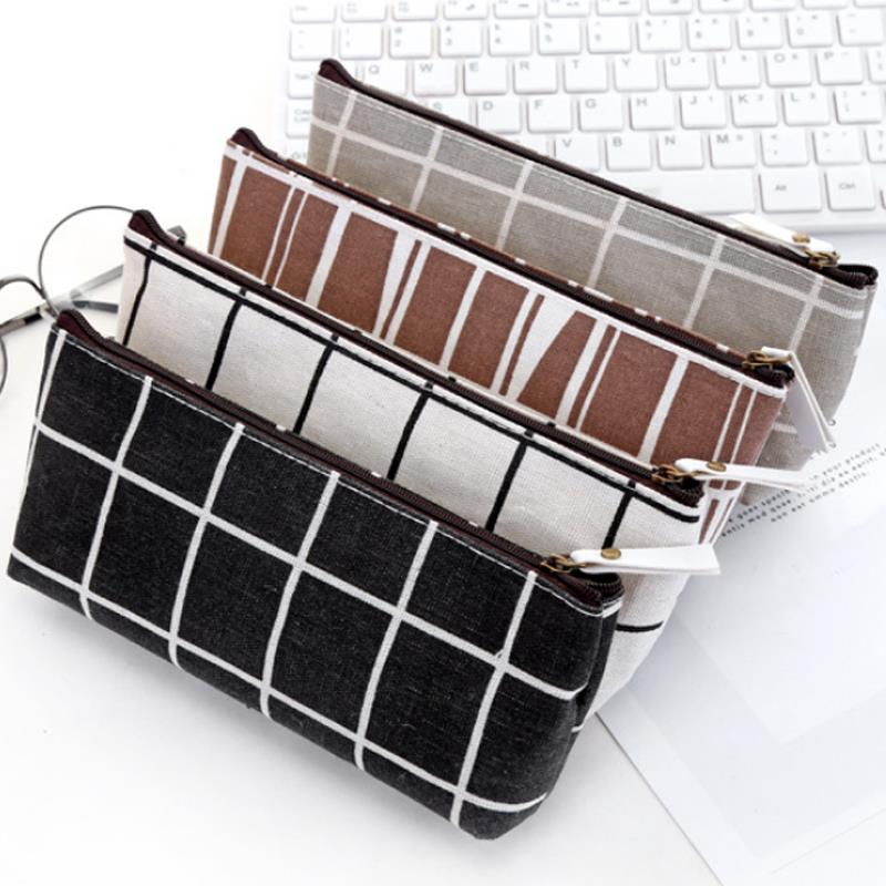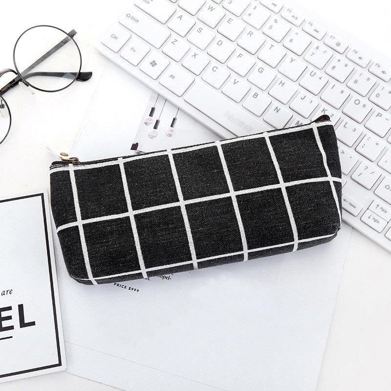 Квадратный холщовый пенал с мелкой свежей полоской, простой и креативный пенал для студентов мужского и женского пола, пенал
