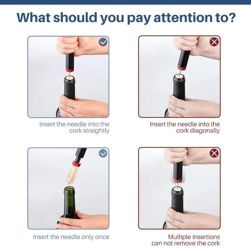 【Штопор 2 в 1】Этот штопор — не только крутой гаджет, но и инструмент 2 в 1 со встроенным прочным резаком для фольги, с помощью которого можно легко удалить фольгу с бутылки вина.. В отличие от традиционных штопоров, этот штопор с воздушным насосом аккуратно удаляет как натуральные, так и искусственные пробки, не позволяя им загрязнять вино.