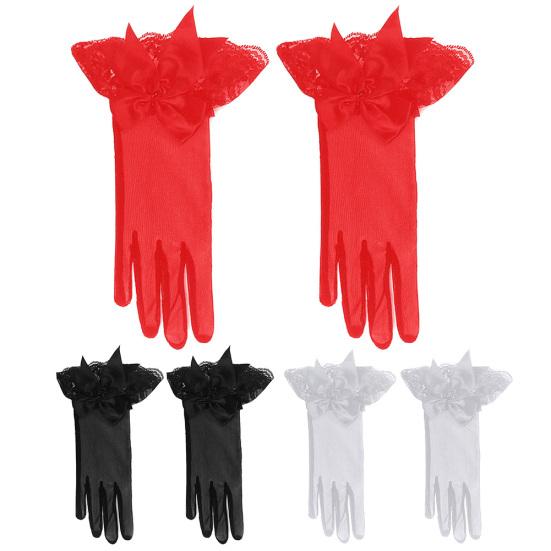 Вечерние женские свадебные короткие перчатки с кружевной отделкой и бантом на палец