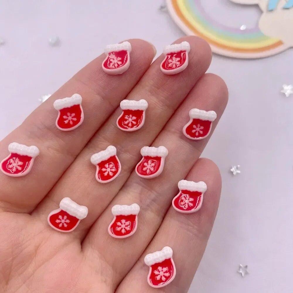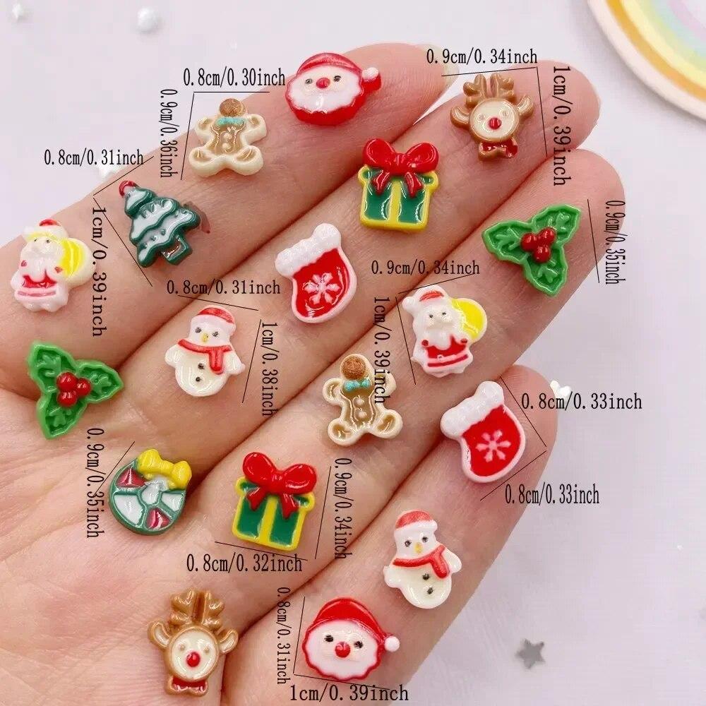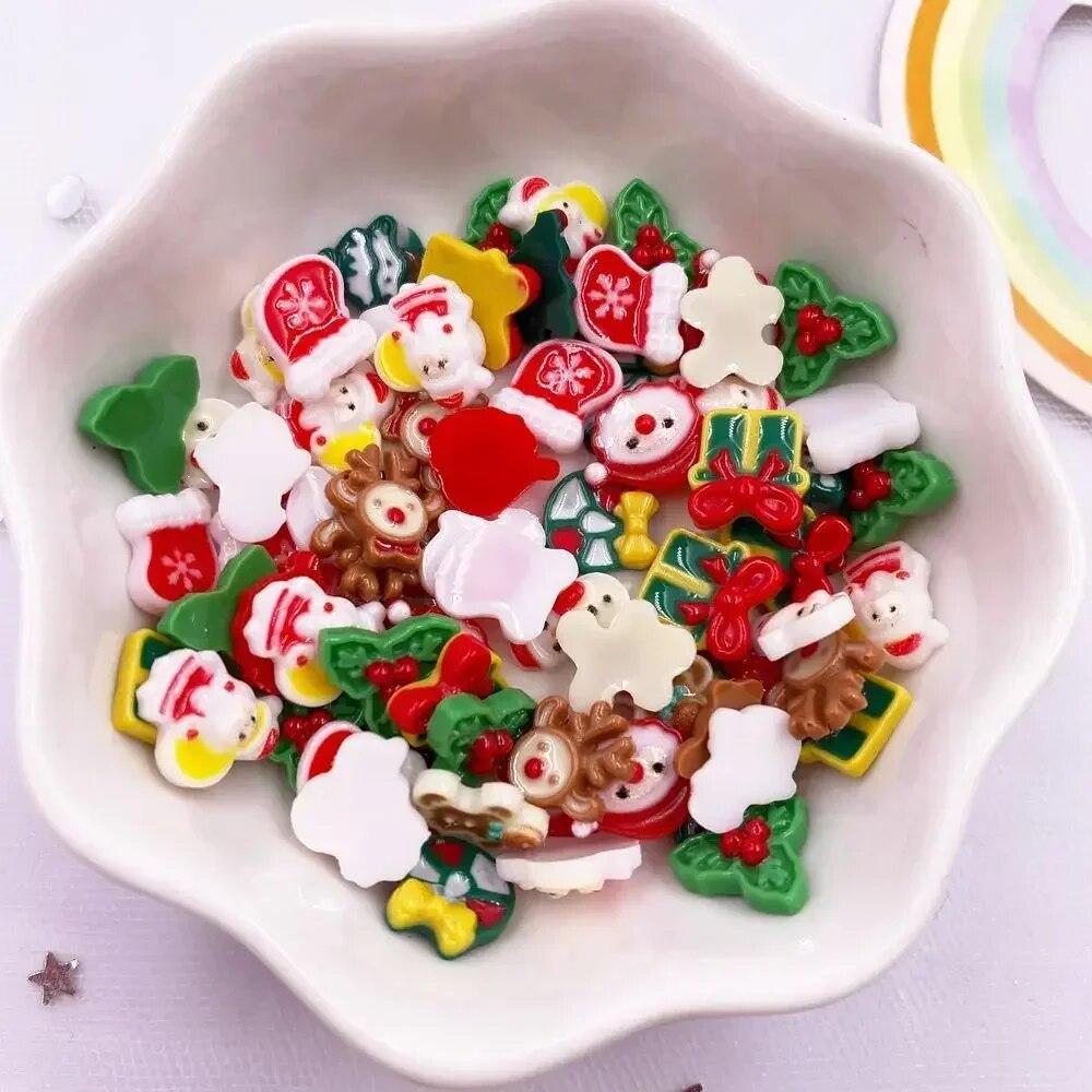 50pcs Resin Mini Colorful Santa Claus Snowman Christmas Tree Deer Flatback Nail Art Decor DIY Scrapbook Accessories Crafts KTY