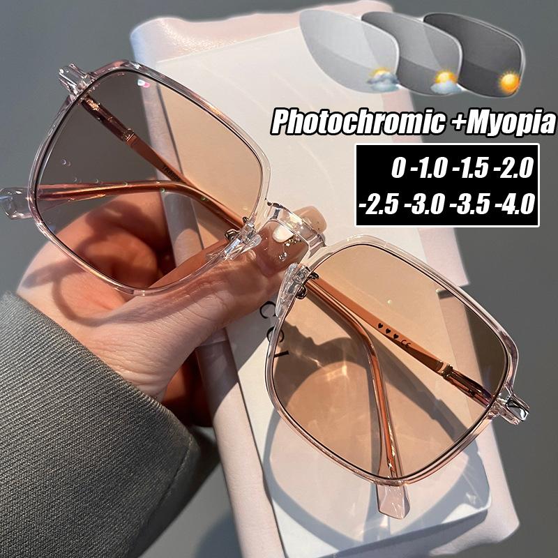 Квадратные очки большого размера, меняющие цвет, для минусового зрения, винтажные, блокирующие синий свет, очки для близорукости, оптические очки, солнцезащитные очки, диоптрии EMA