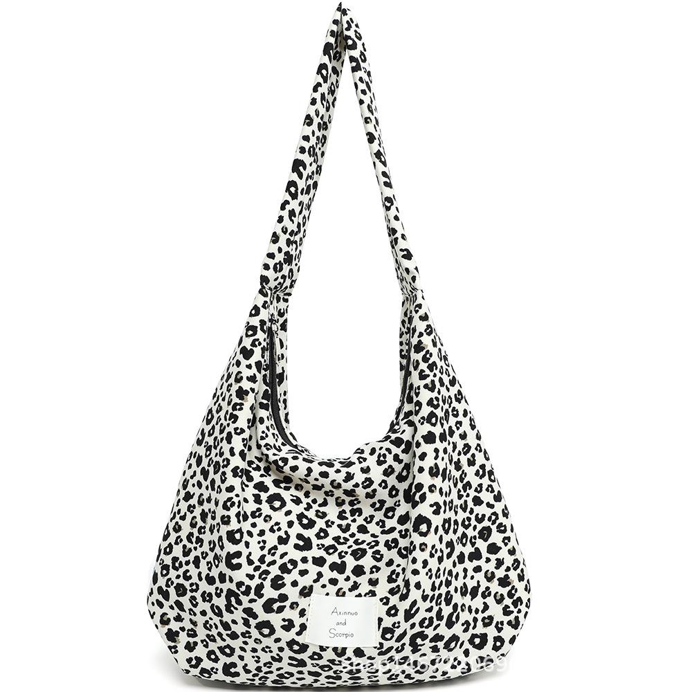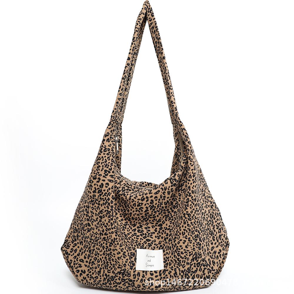 Холщовая сумка-тоут с леопардовым принтом 2025: Большая вместимость, нишевый дизайн, женская сумка через плечо