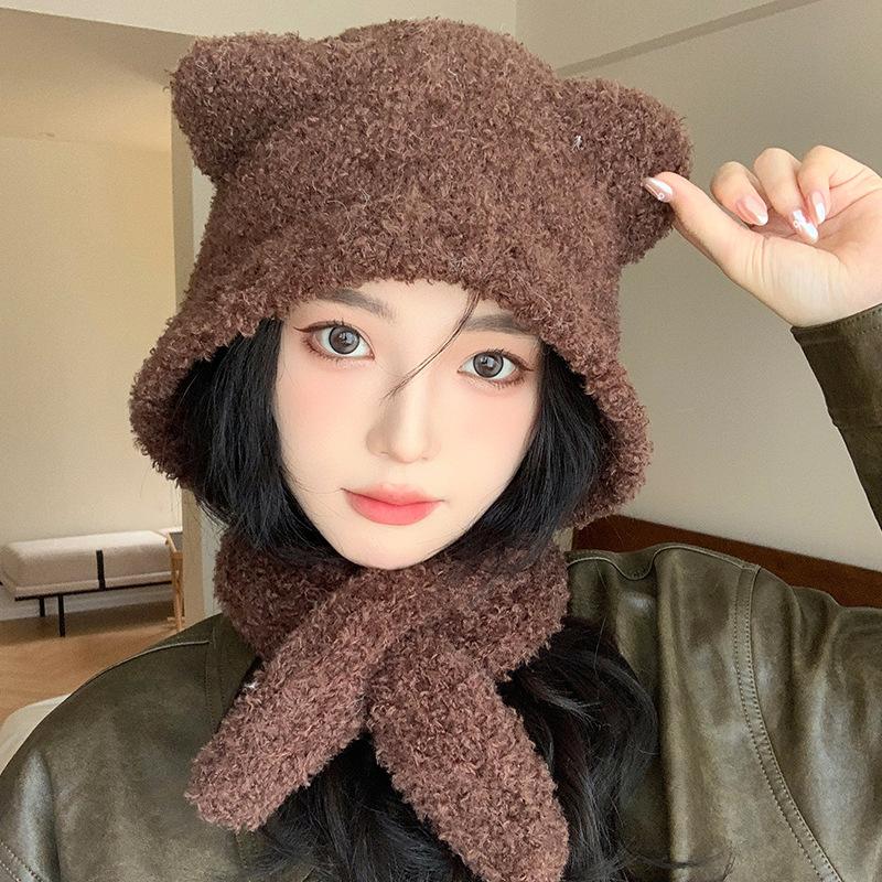 Новая милая шапка-медвежонок для женщин на осень и зиму, универсальная теплая шерстяная шапка, защита от холода на улице, защита ушей, вязаная шапка