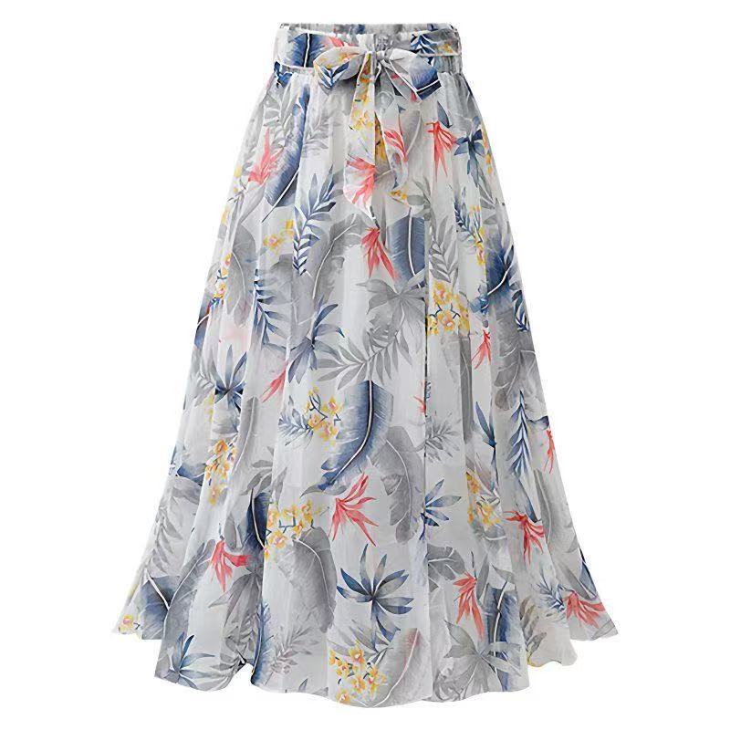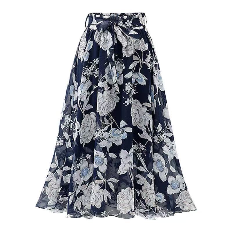 Летняя тонкая юбка миди для женщин, шифоновая полуюбка с высокой талией, цветочная расклешенная юбка А-силуэта на резинке, до 100 кг