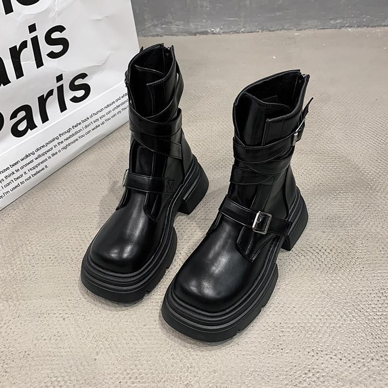 Fashion temperament brown slim platform Martin boots women's new autumn small thick heel short boots