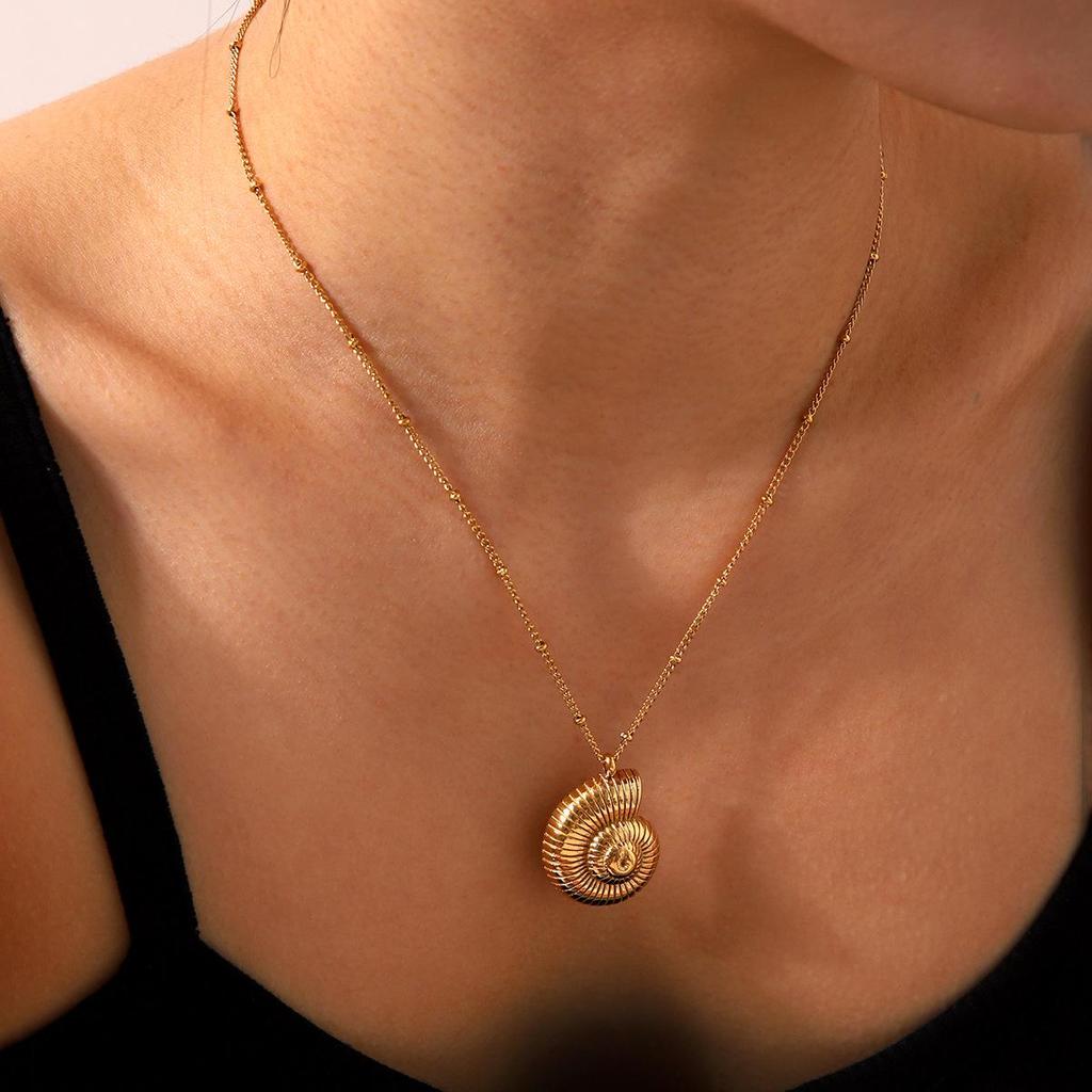 Ожерелье с подвеской в виде раковины из нержавеющей стали с 18-каратным золотым покрытием в стиле INS для женщин