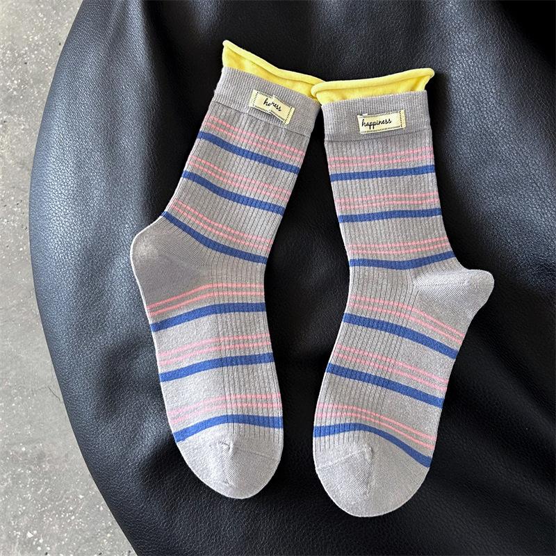 Женские осенние носки с узором, сочетающиеся по цвету, с надписью из ткани, с эффектом двухслойности