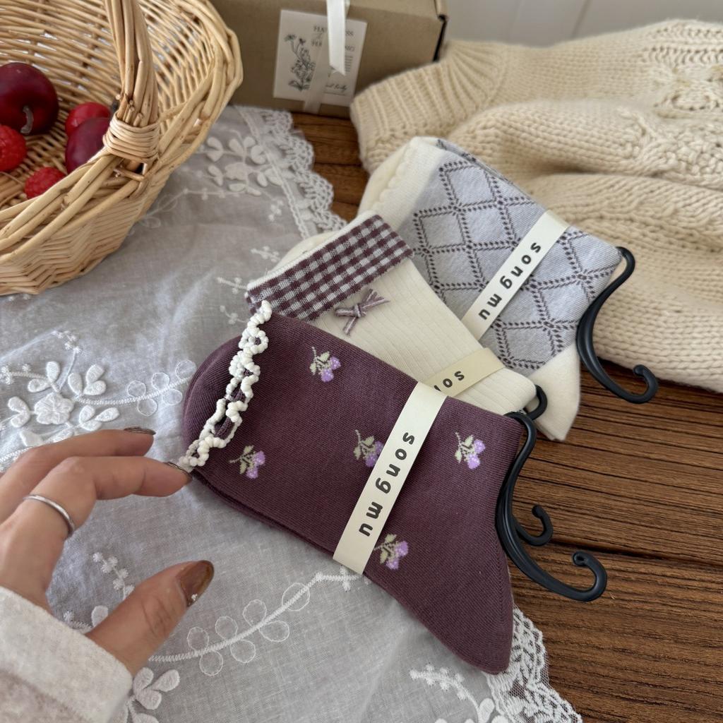 Женские весенне-осенние винтажные милые гольфы в рубчик с оборками и клетчатым бантом