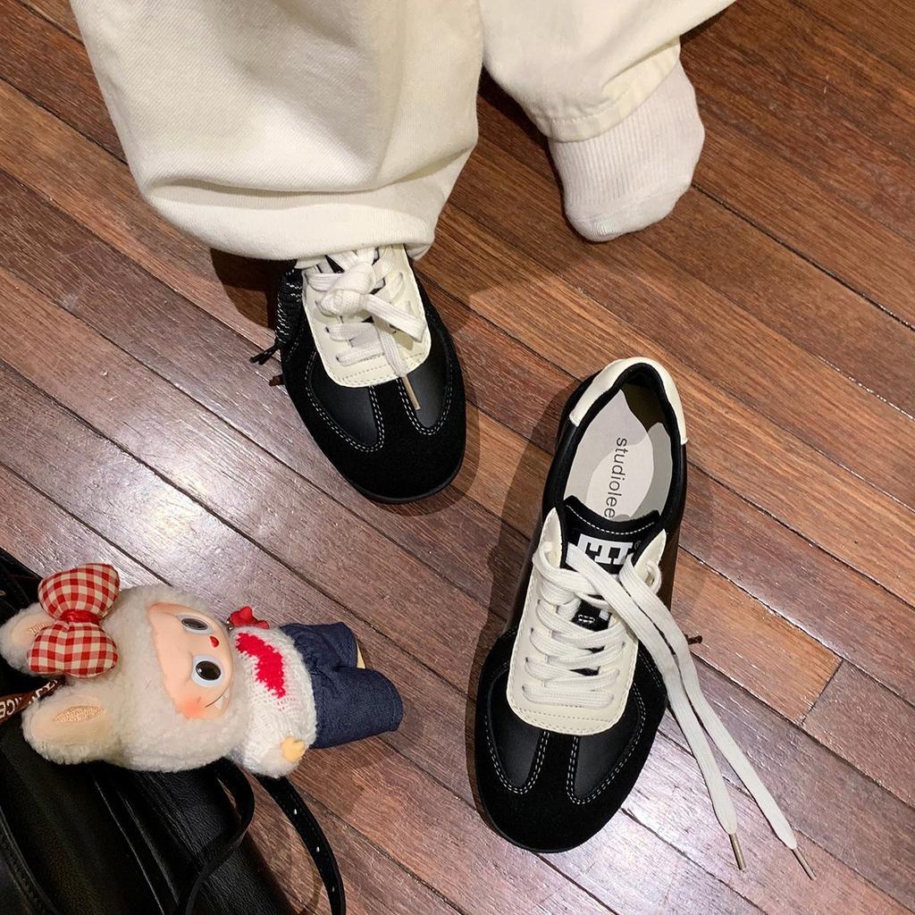 Версия из овчины~ Виноградный цвет на шнуровке, контрастная расцветка, круглый носок, универсальные, удобные, спортивные и повседневные, внутренняя танкетка, кожаные тренировочные с