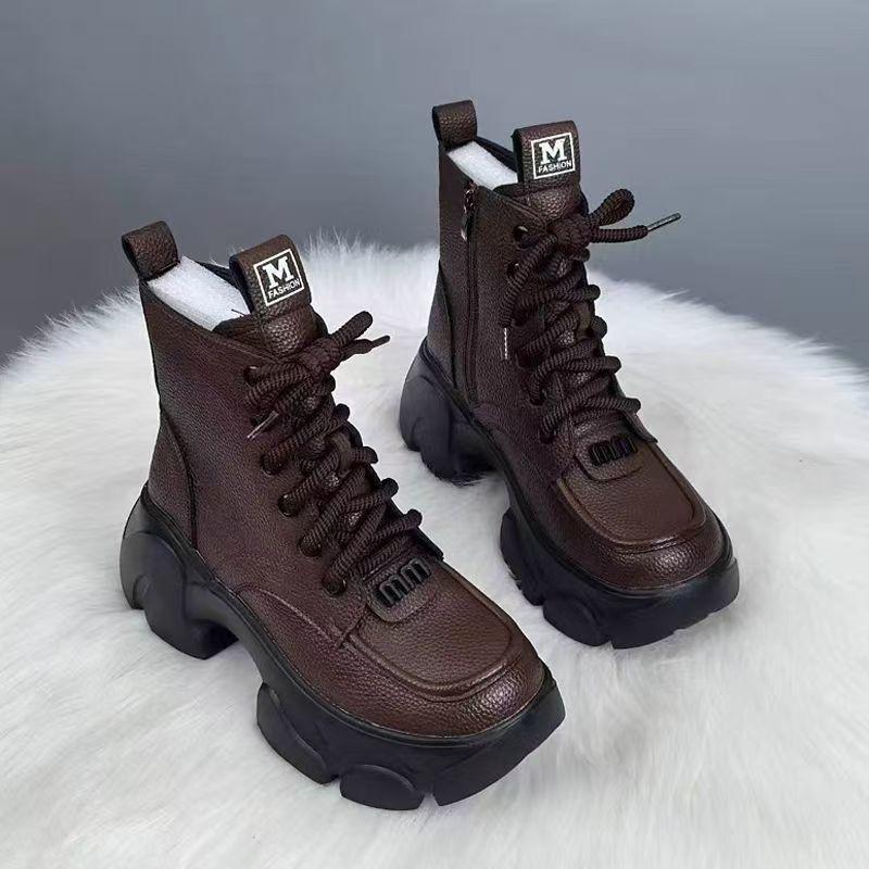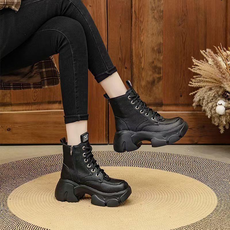 Настоящая мягкая кожа ботинки Мартин женские 2025 новые осенние одинарные ботинки ботинки в британском стиле женские зимние на толстой подошве теплые хлопковые ботинки женские