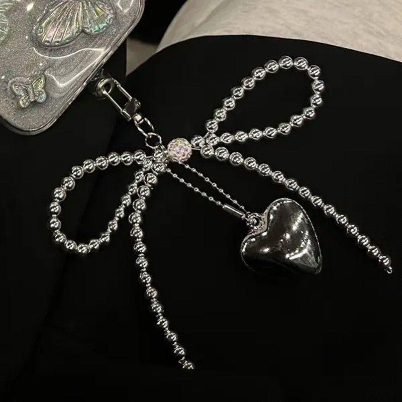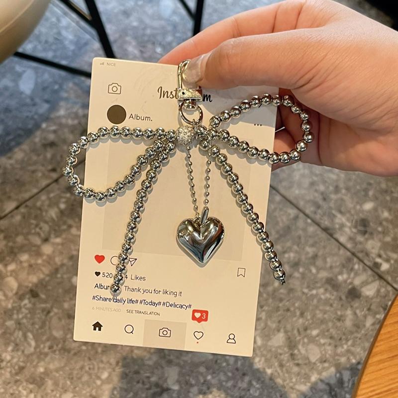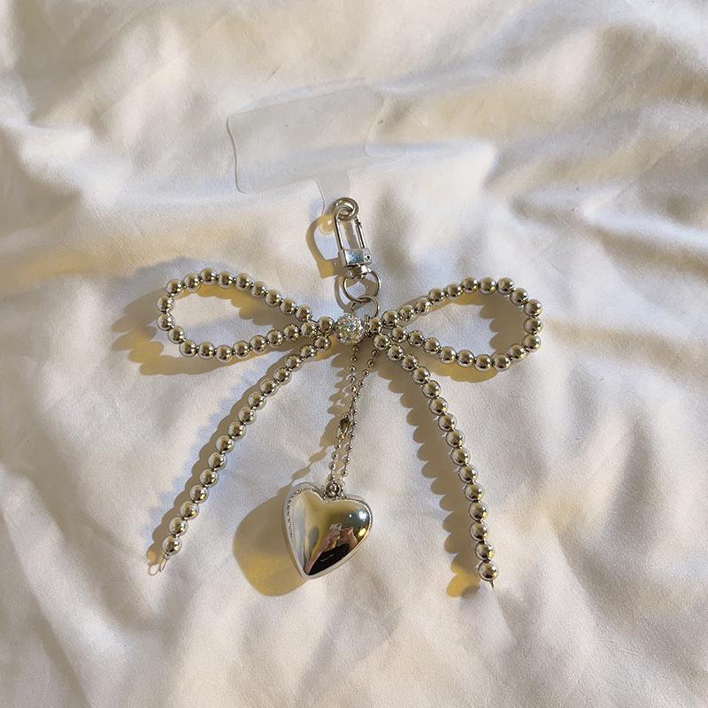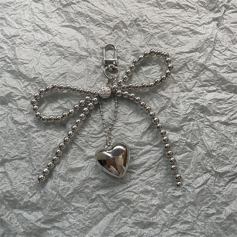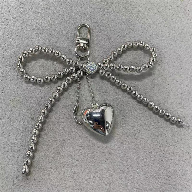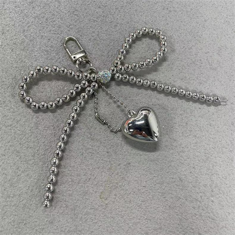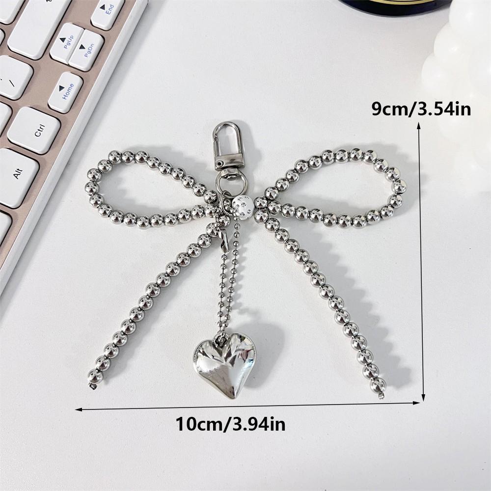 Bowknot Heart Bag Pendant Beaded Silver Bow Handbag Backpack Decoration For Bags Accessories CLE