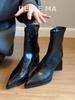 Супермягкая овчина~ остроносые французские тонкие ботинки 2025 осень и зима новые ботильоны Мартин на высоком каблуке темпераментные короткие ботинки женские