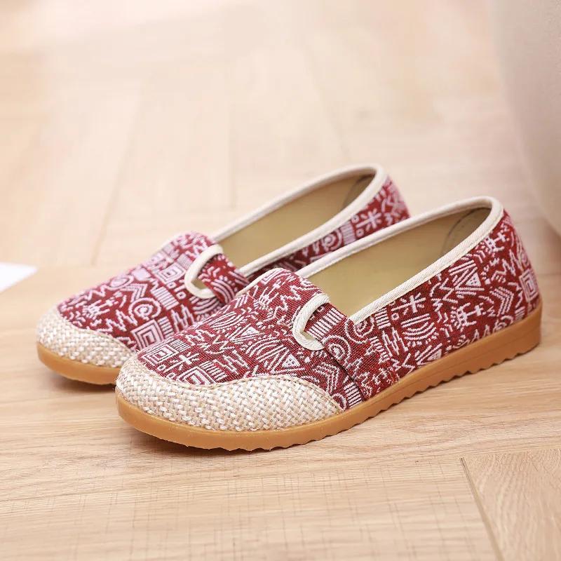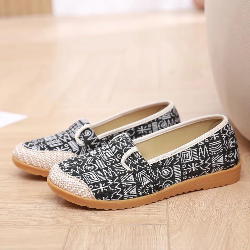 2025 Весенние балетки Этнические парусиновые повседневные женские туфли Удобные нескользящие туфли-рыбаки На шнуровке Оксфорды Одинарные кроссовки