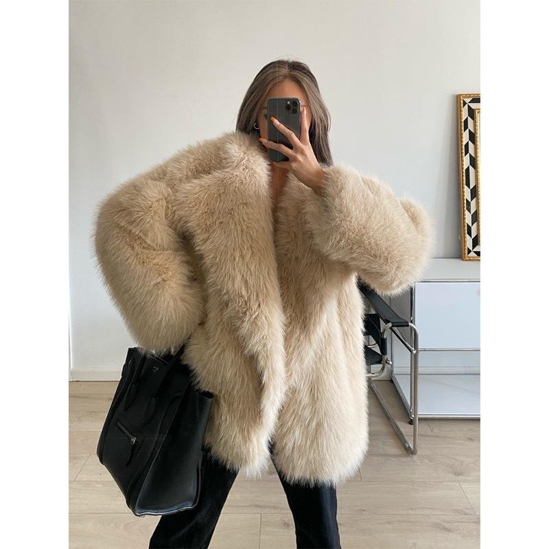 Kintoka пальто из искусственного лисьего меха женское средней длины темпераментное с большим лацканом свободное плюшевое пальто