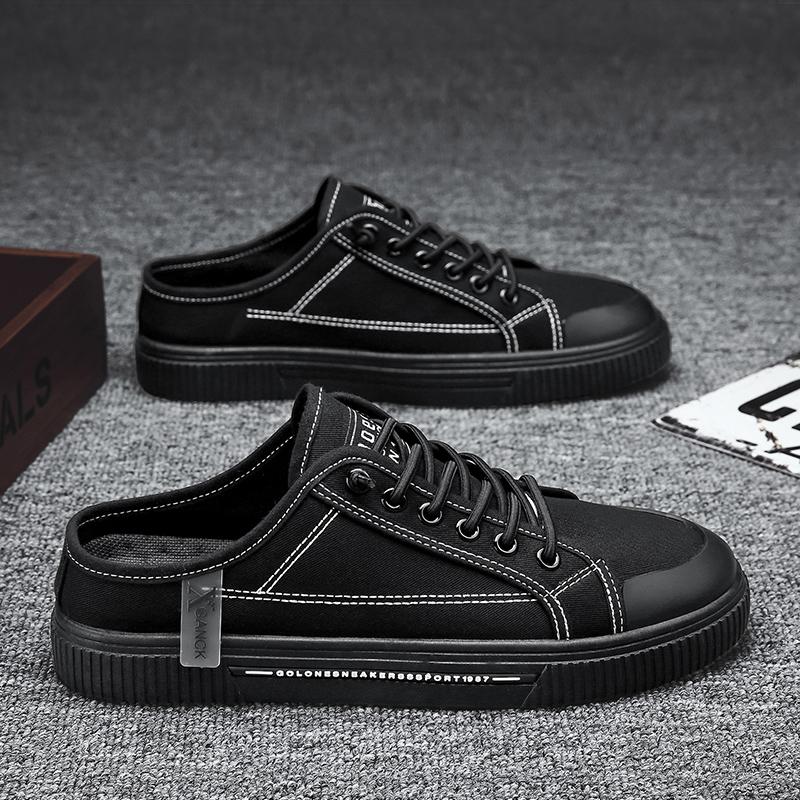 2025 Новые Модные Черные Холщовые Туфли Классические Универсальные Плоские Полушлепанцы Удобные и Дышащие Кроссовки для Ленивых Мужчин