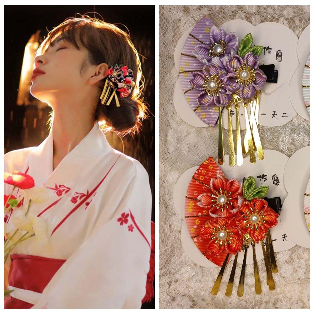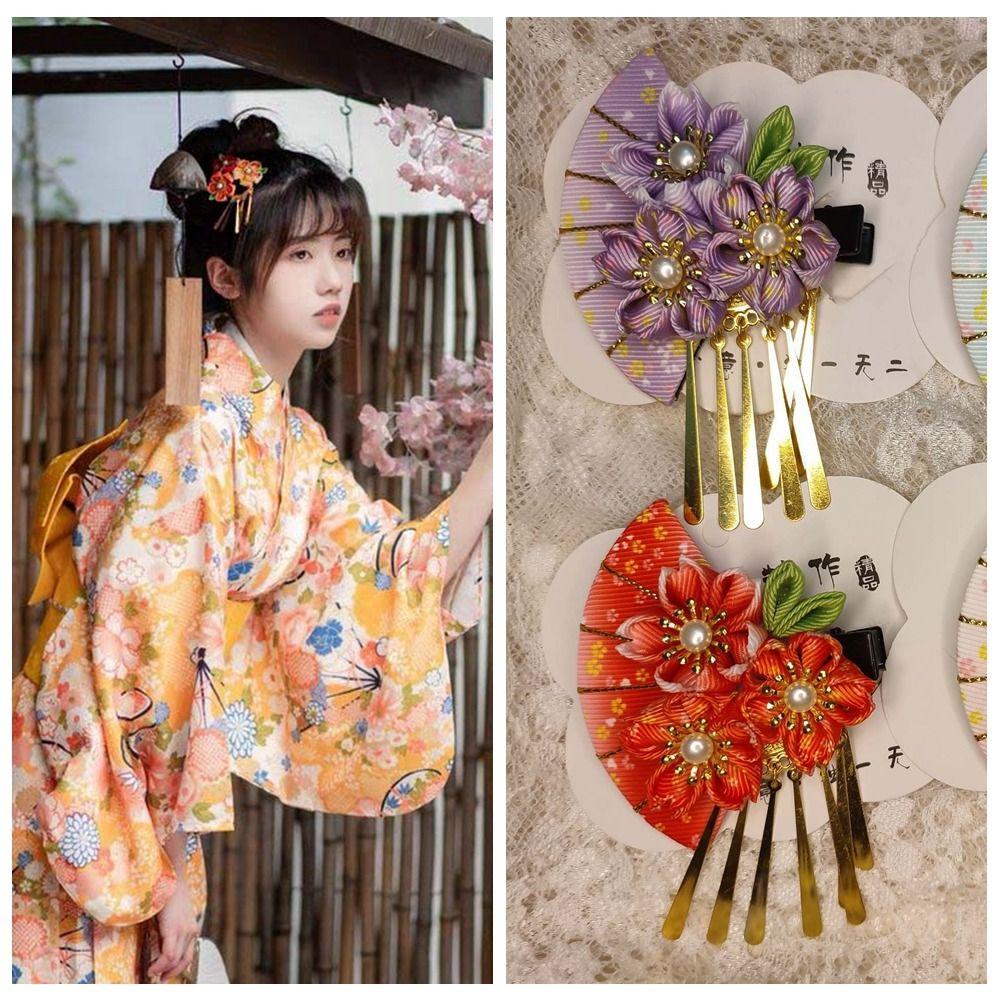Кисточки Японский кимоно Головной убор Цветок Кисточка Веер Заколка для волос Простые девушки