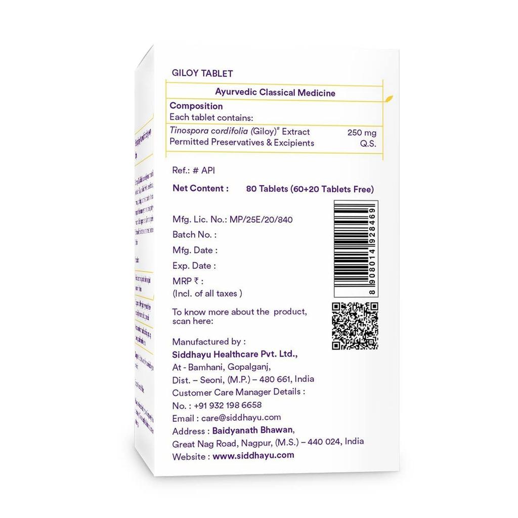 Baidyanath Siddhayu Giloy Tablets 80 Count Pack Natural Immunity Booster & Blood Purification Support