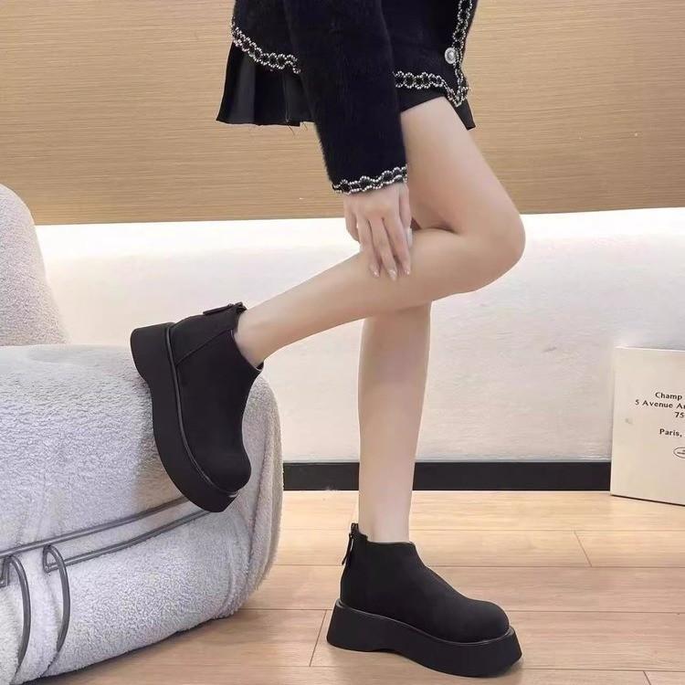 Женские зимние сноубутсы на толстой подошве 2025 новые с круглым носком флисовые короткие ботинки на платформе с задней молнией британские хлопковые ботинки