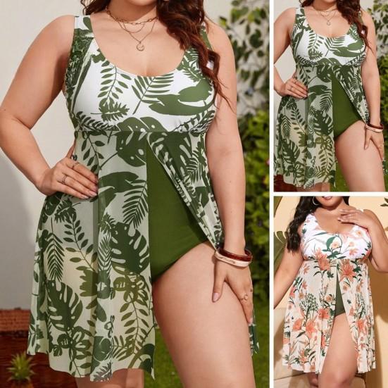 Женский летний купальник большого размера с U-образным вырезом, без рукавов, с растительным принтом, с разрезом по низу, цельный, контролирующий живот, быстросохнущий, пляжная одежда EMA
