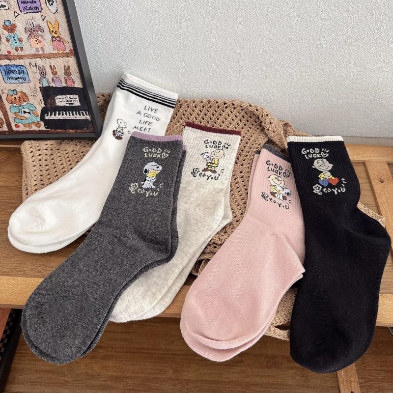 Мультяшные носки до середины икры для женщин с контрастными краями, мужские и женские носки из чистого хлопка в ретро-тренде