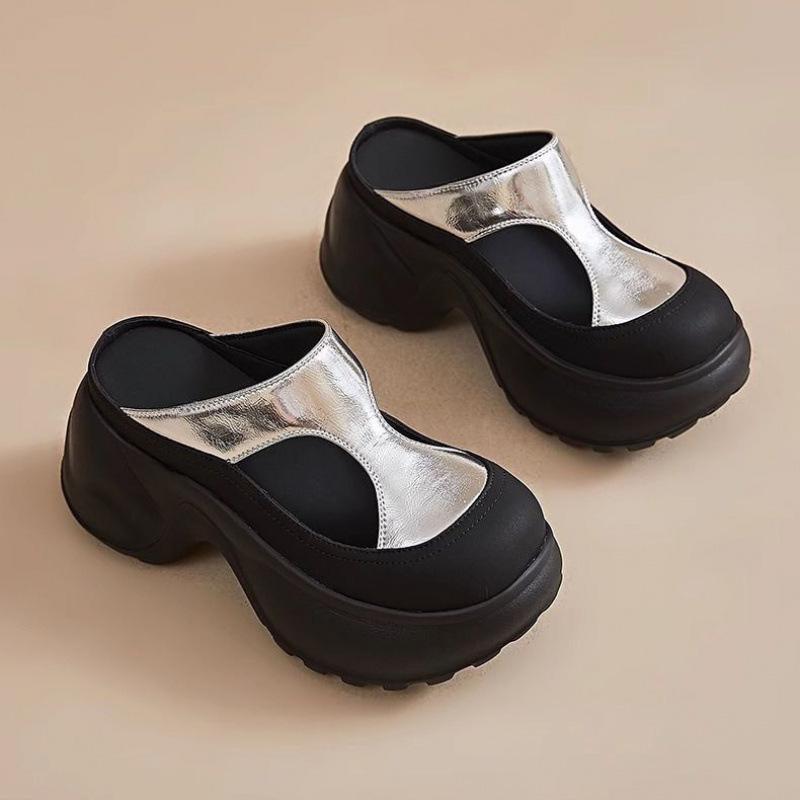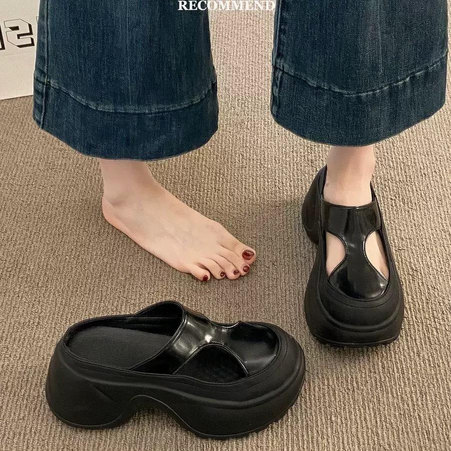 Баотоу полутапочки женские 2025 осень новая интернет-знаменитость полые дышащие сандалии маффин толстая подошва увеличивающие рост женские туфли