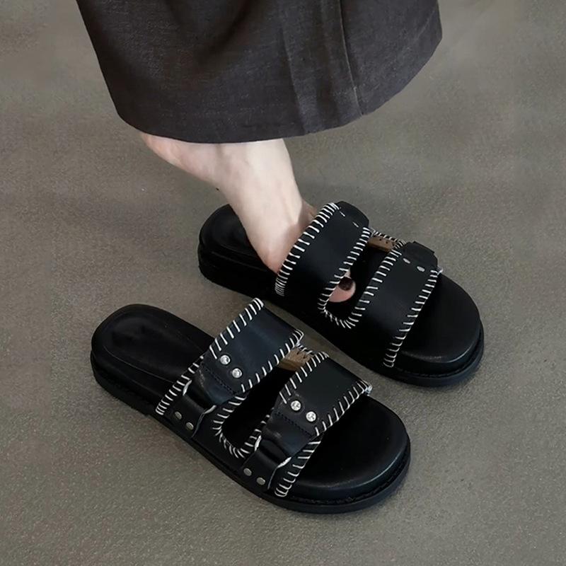 Sheepskin version~ New rivet design with sandals for women who are not tired of stepping on shit in summer, low-heeled Roman sandals