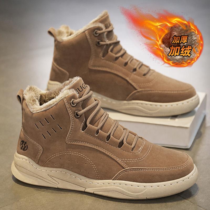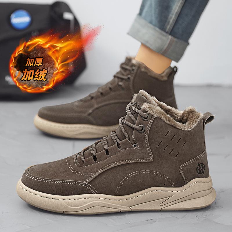 Зимняя новая обувь для мужчин короткие ботинки замшевая кожа высокие кеды повседневная обувь мужские теплые плюшевые ботильоны большой размер