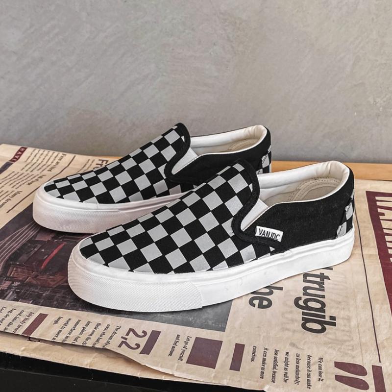 Весенняя Новая Обувь для Мужчин Холщовая Повседневная Обувь Модная Клетчатая Плоская Обувь для Скейтборда Отражающая Свет Слипоны Лоферы — купить товар онлайн с бесплатной доставкой по всему миру!