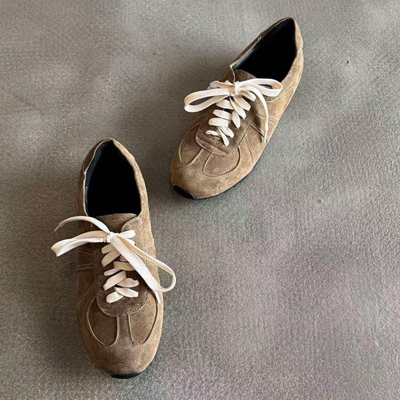 Версия из овчины~ 2025 новый ретро нишевый круглый носок на шнуровке на плоской подошве повседневная спортивная мода низкий верх немецкие кроссовки женские