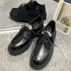 Найди второй волосок! Модные универсальные новые корейские лоферы с круглым носком, на шнуровке из кожи, на толстом каблуке, женские туфли из маленькой кожи