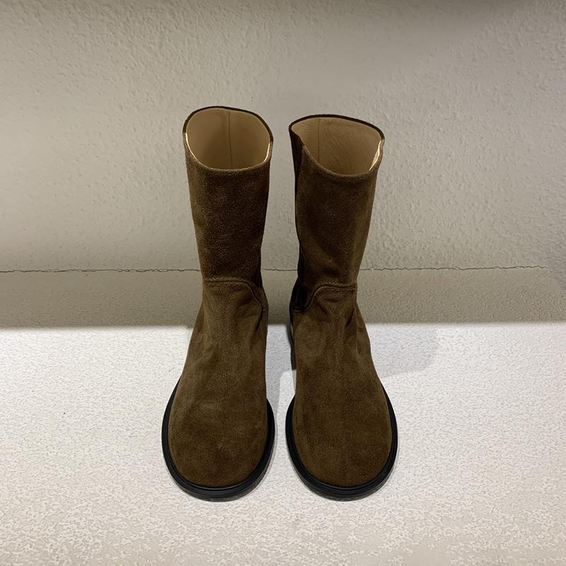 Версия из овчины~ Корейская версия нишевые ретро полусапоги с круглым носком женские кожаные рыцарские сапоги с большой головой ботинки мартин низкий каблук голенище