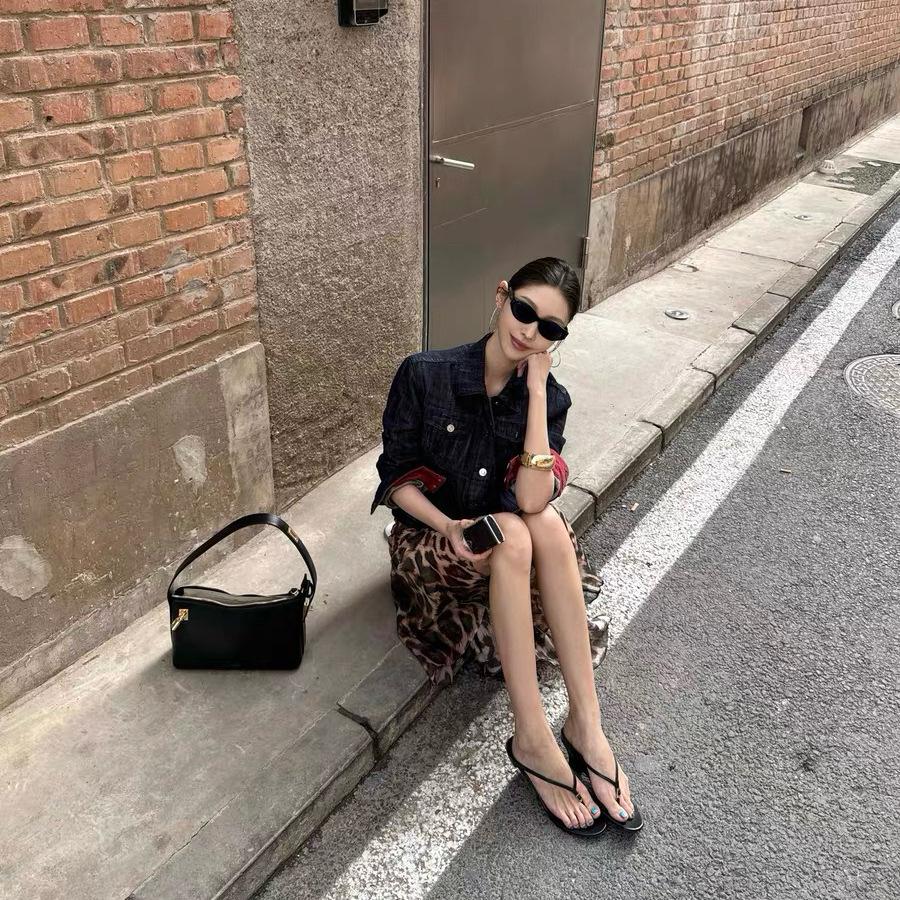 Версия из овчины~ Французские шлепанцы на низком каблуке для женской летней носки кожаные с открытым носком повседневные отпускные пляжные сандалии