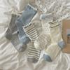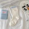 Радужные тканевые этикетки, ракушка, бант, носки в горошек для женщин, серые и синие полосатые, черные носки до середины икры с отделкой ушками