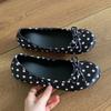 Версия из овчины~ Французские ретро туфли-балетки с круглым носком и бантом, с легким вырезом, женские черные в горошек с мягкой поверхностью