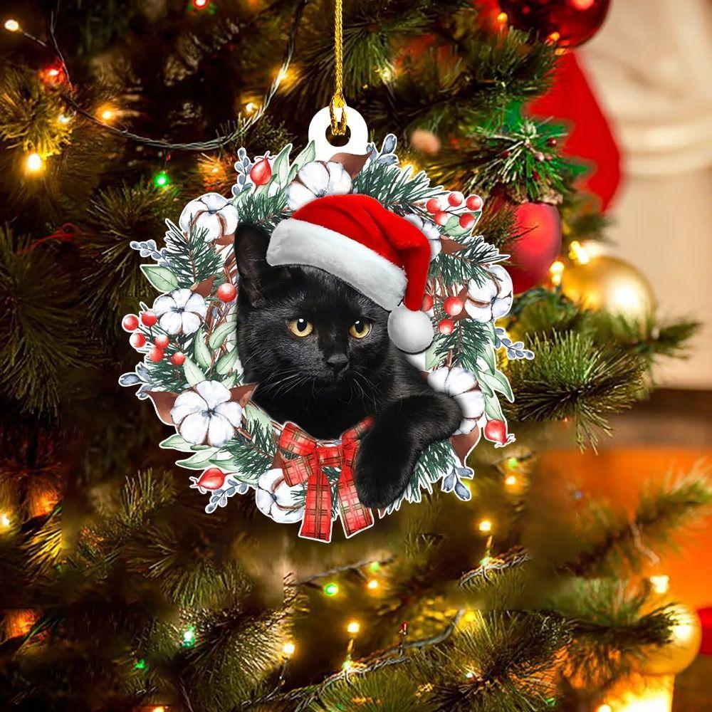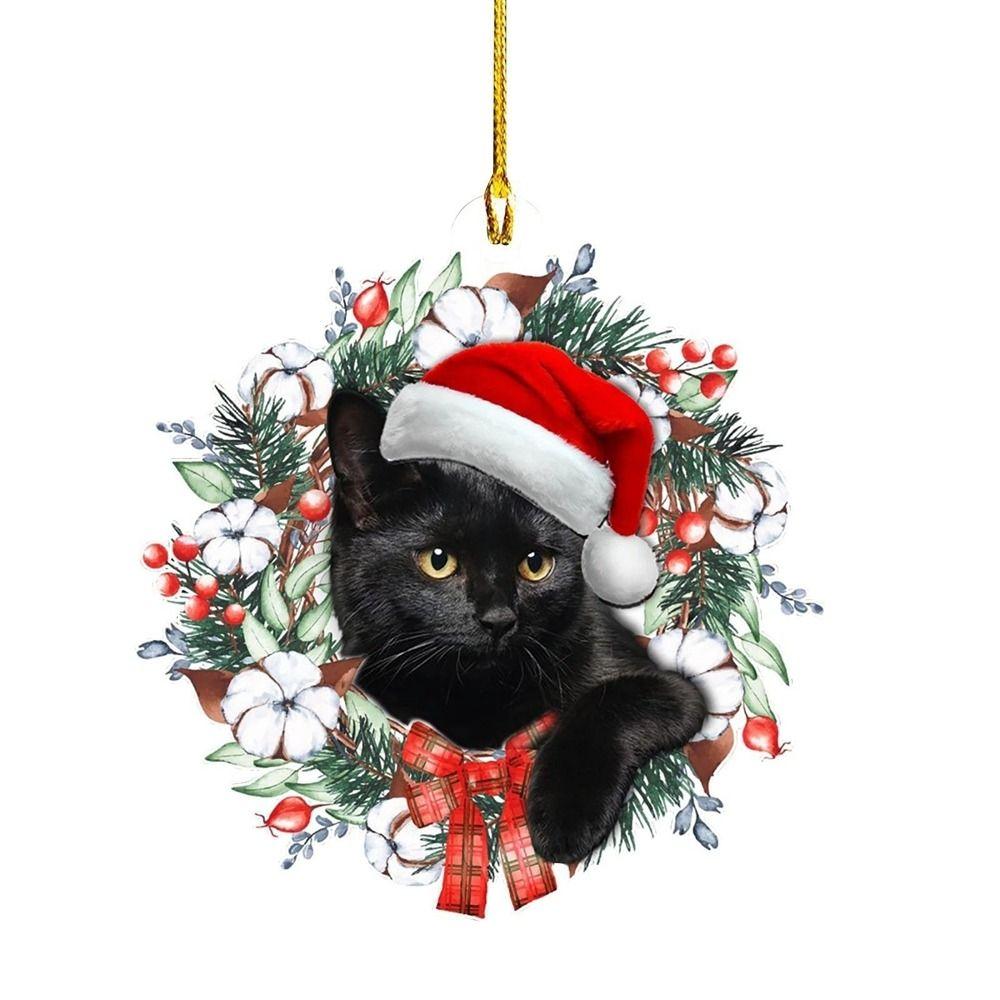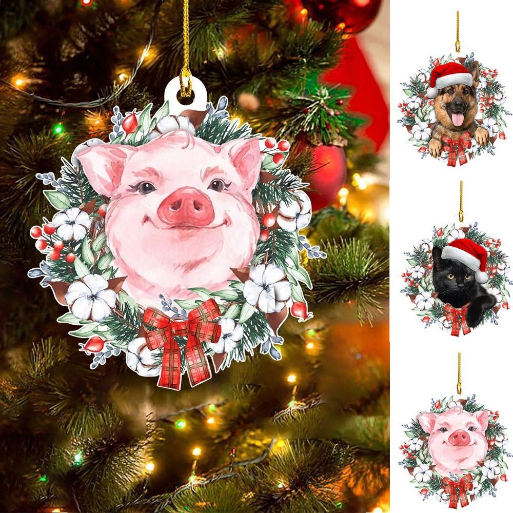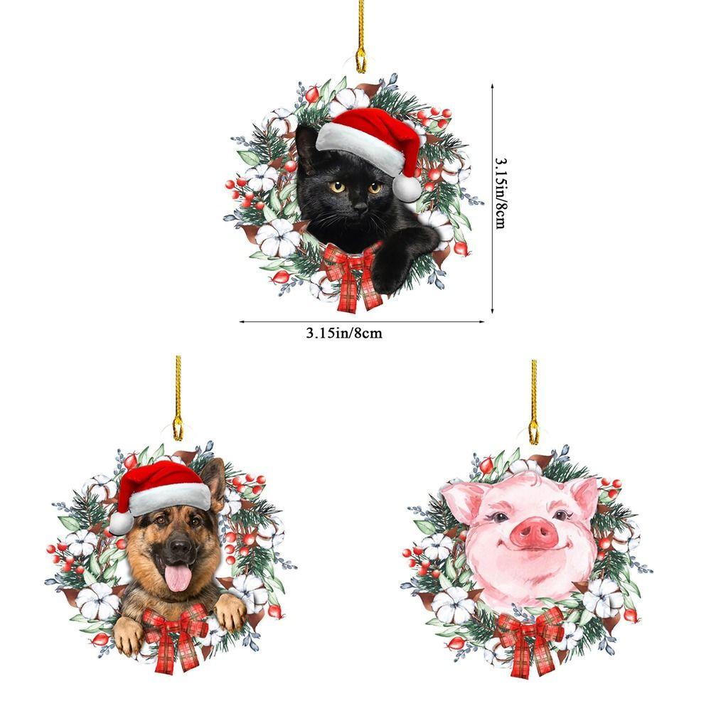 Hanging Cat Dog With Santa Hat Pendant Acrylic Christmas Tree Ornaments Xmas Gifts