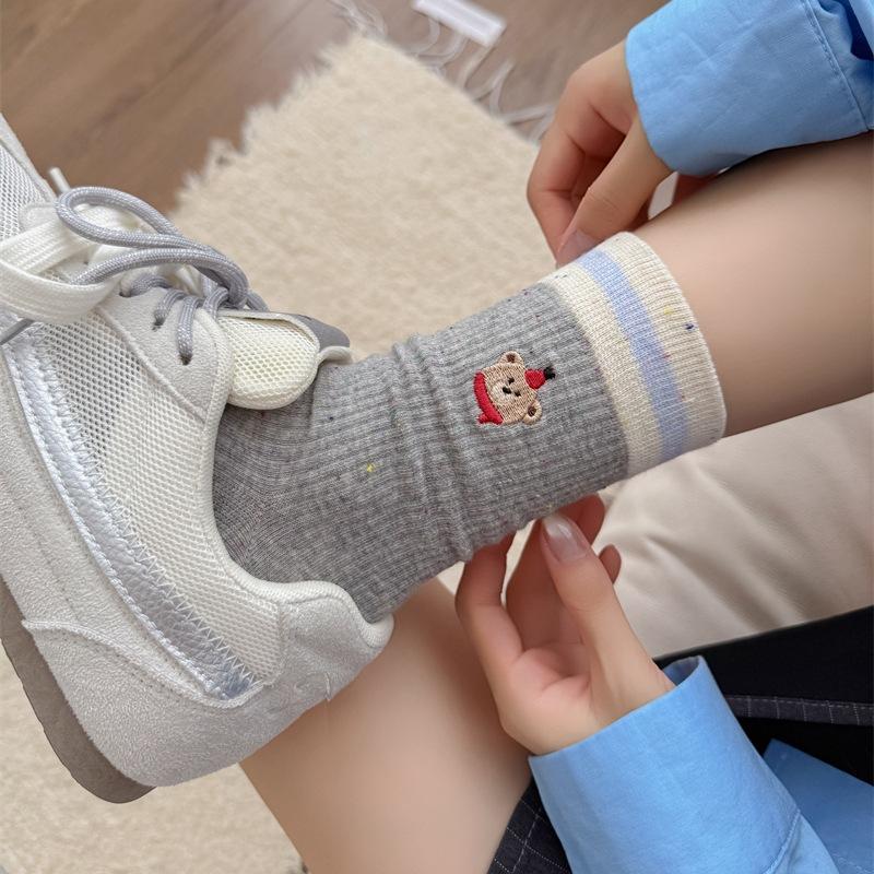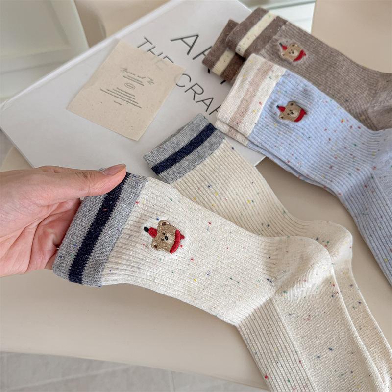 Милые осенние вышитые шарфы, детские носки с маленьким мишкой, женские носки до середины икры из точечной пряжи микро-прессованные, цветные мультяшные махровые носки